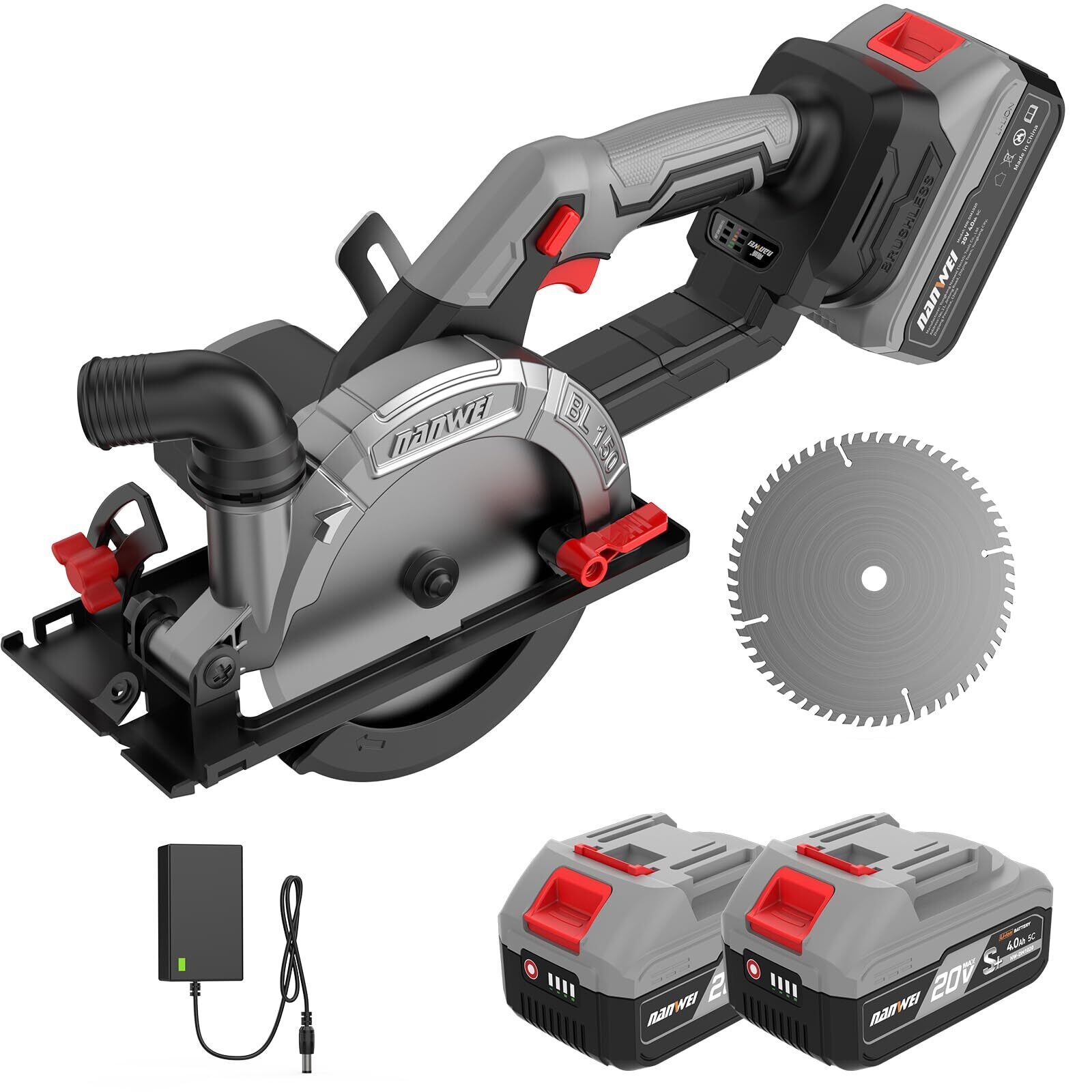NANWEI 充電式丸ノコ 刃径150mm 最大切込み深さ55mm マキタ18Vバッテリー対応 電動丸ノコ ブラシレスモーター コードレス丸鋸 丸のこ 石材・木材・タイルの切断 (4.0Ah電池セット)