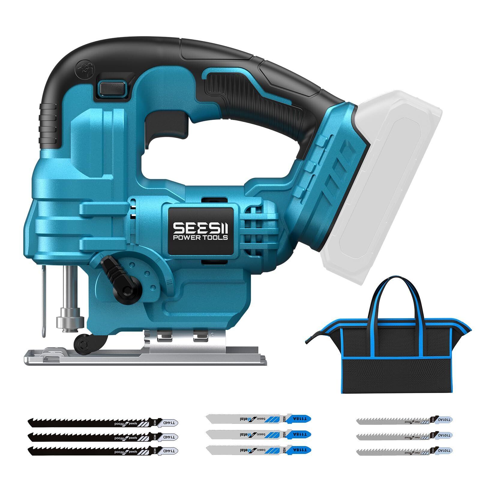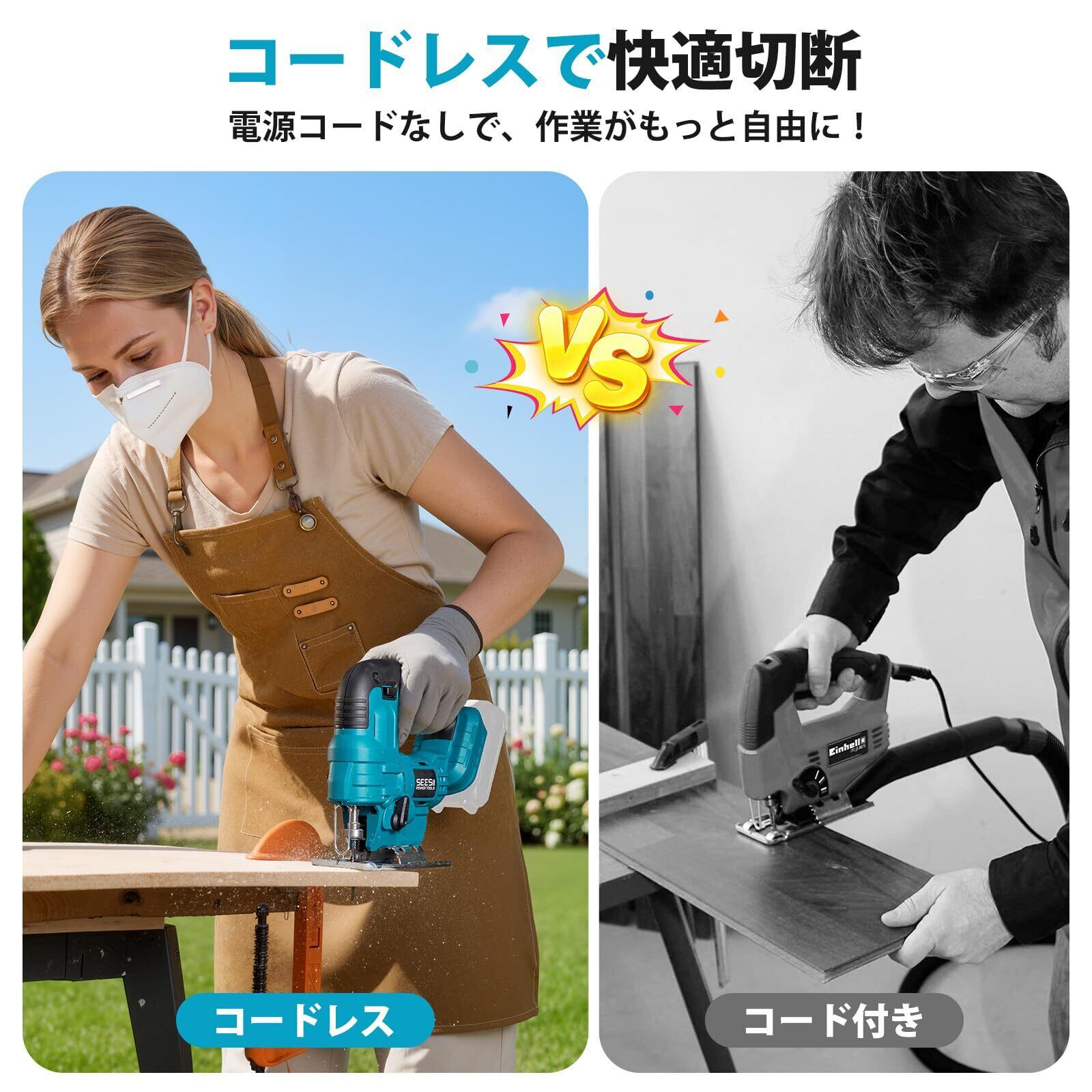 SEESII ジグソー 電動 充電式ノコギリ マキタ18Vバッテリー互換 木材・DIY・日曜大工用 コードレス 高出力 切断工具 安全カット・LEDライト付き 本体のみ(バッテリー別売)日本語取扱説明書付 型番:JS01