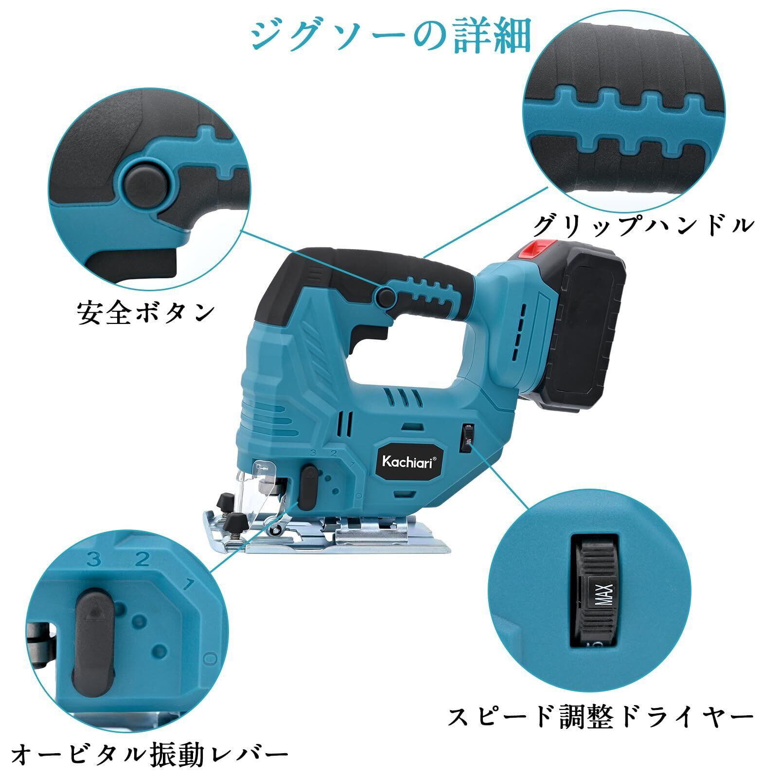 【在庫限り】Kachiari ジグソー 充電式 18v ジグソー 切断 工具 電動 ノコギリ のこぎり 木材 DIY 安全 カット ライト 日曜大工 LED コードレス 鋸 コウグ ハイパワー LEDライト付き 家庭用 電気ノコギリ ブラシレスモーター DIY用 マキタ18Vバッテリー対応 BL1830 BL1840 BL1850 BL1850B BL1860 BL1860B 【工具本体のみ】