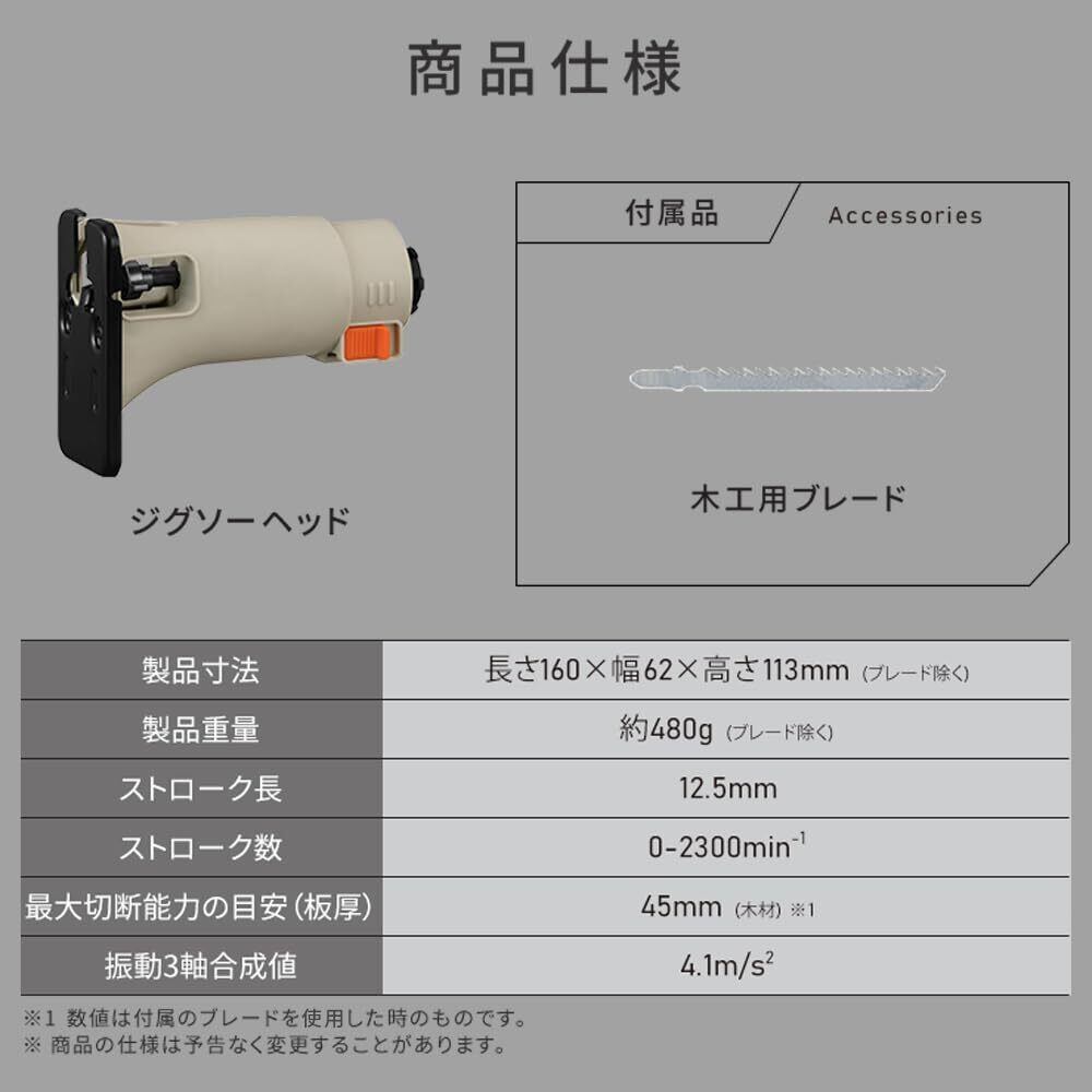 直線+曲線の切断に!ジグソーヘッド10.8V