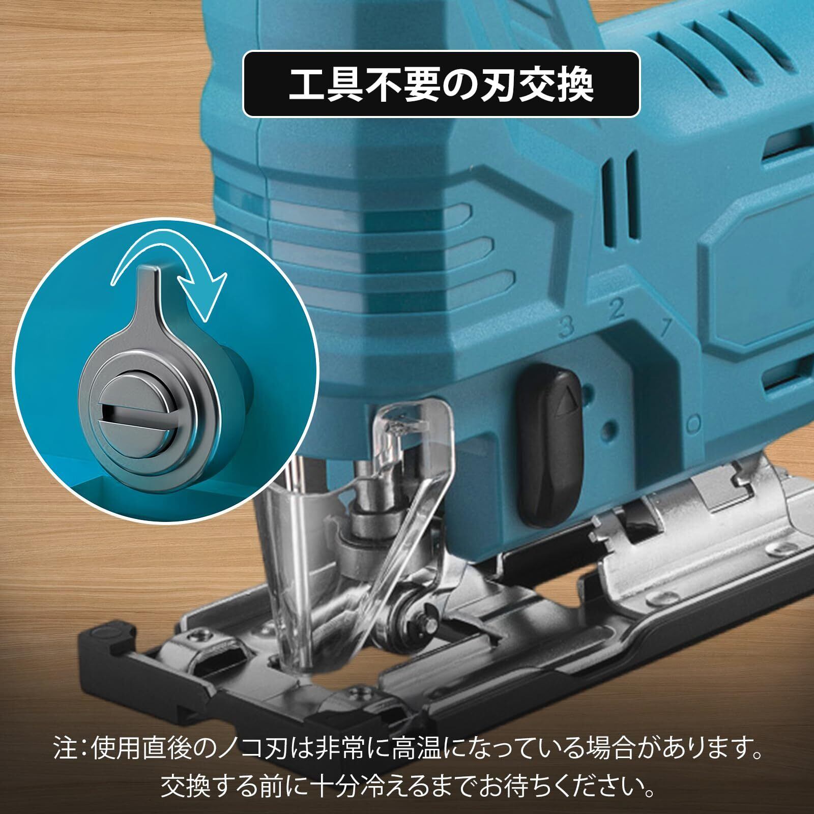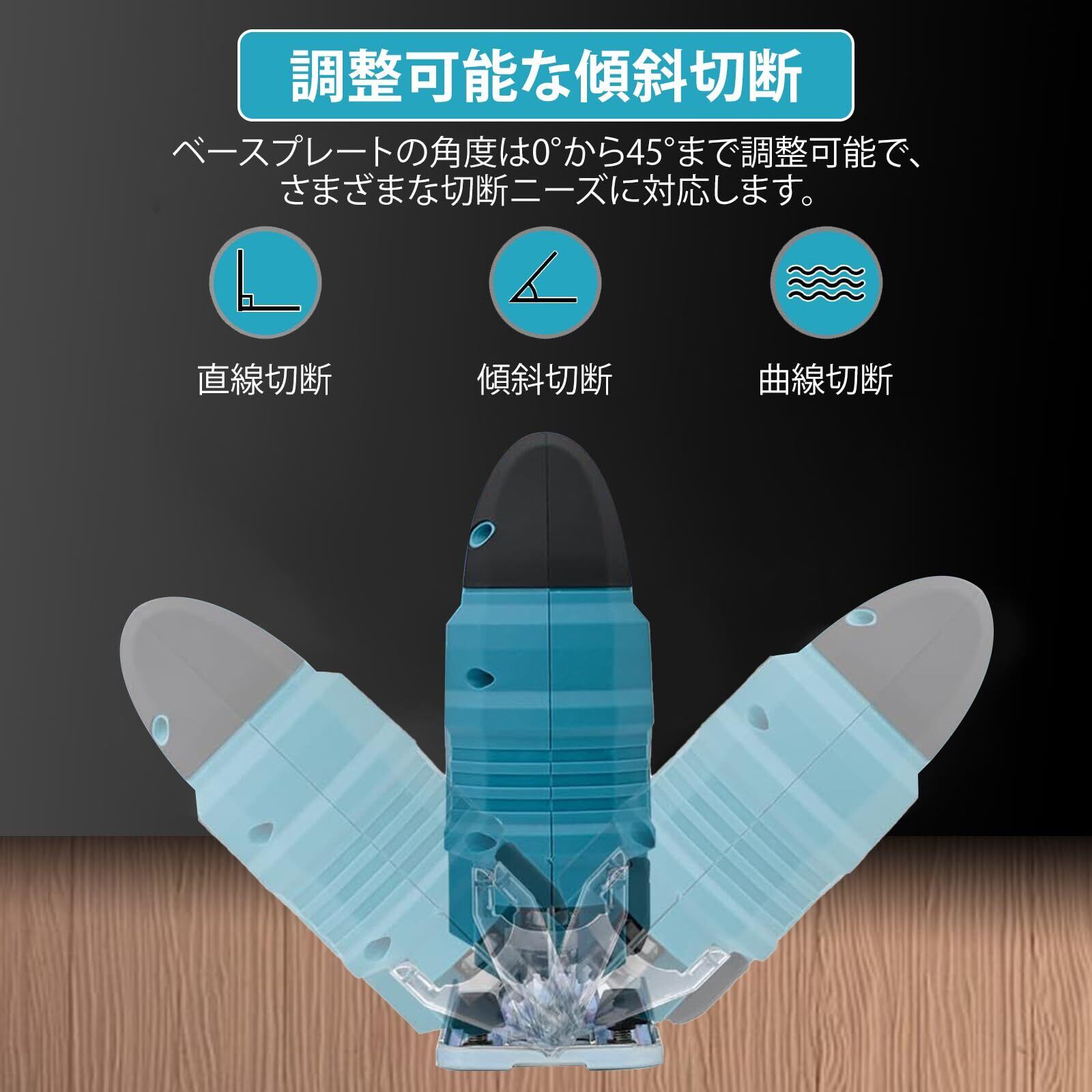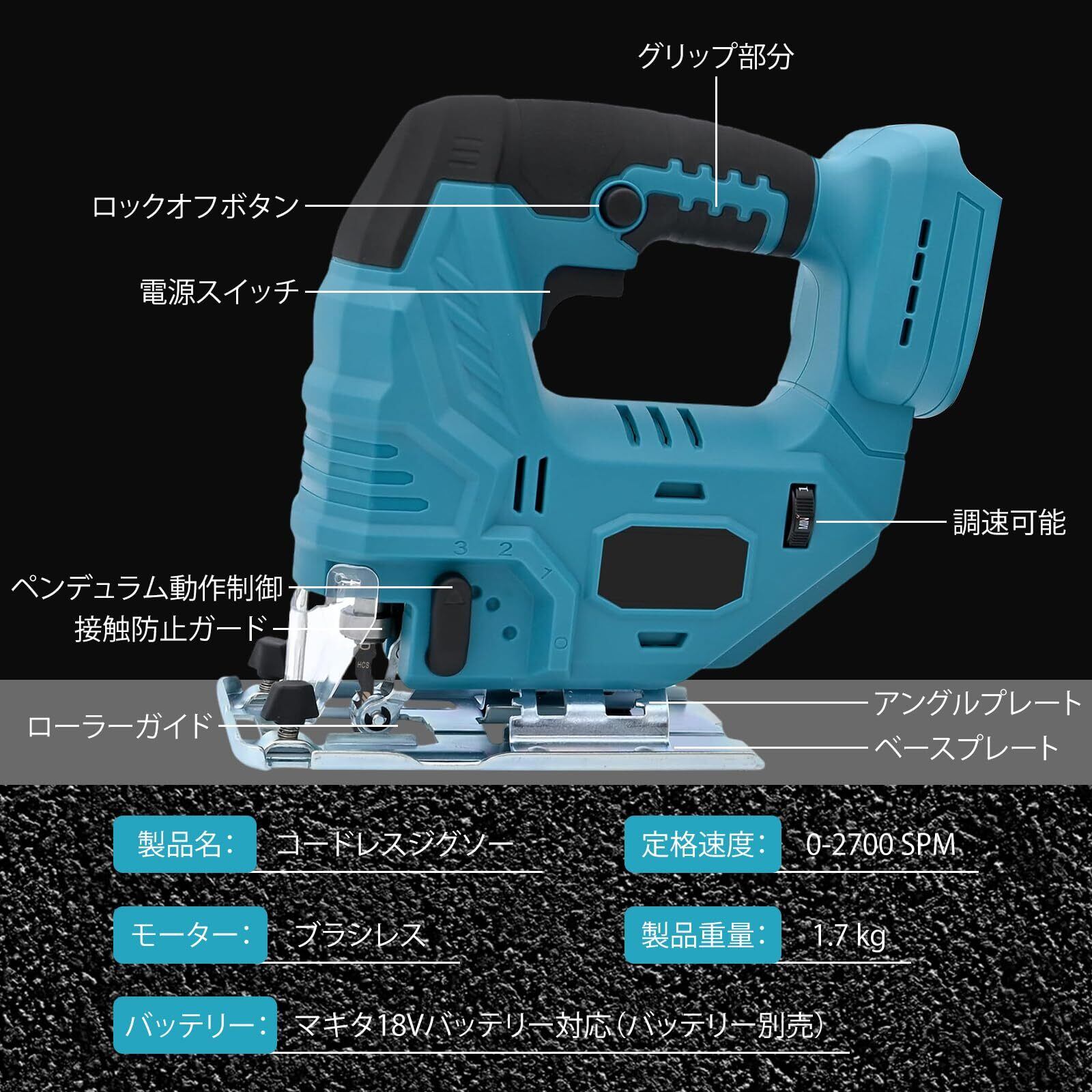 充電式ジグソー 電動ジグソー 電動のこぎり コードレス マキタ対応 18vバッテリー ブラシレスモーター 傾斜角度0~45° 曲線切断 オービタル4段階調整 最大2700RPM 木材80mm 切断工具 木材 金属 プラスチック 家庭用 DIY 透明保護カバー付き LEDライト付き ブレード6本&定規&ドライバー付き バッテリー別売り ブルー