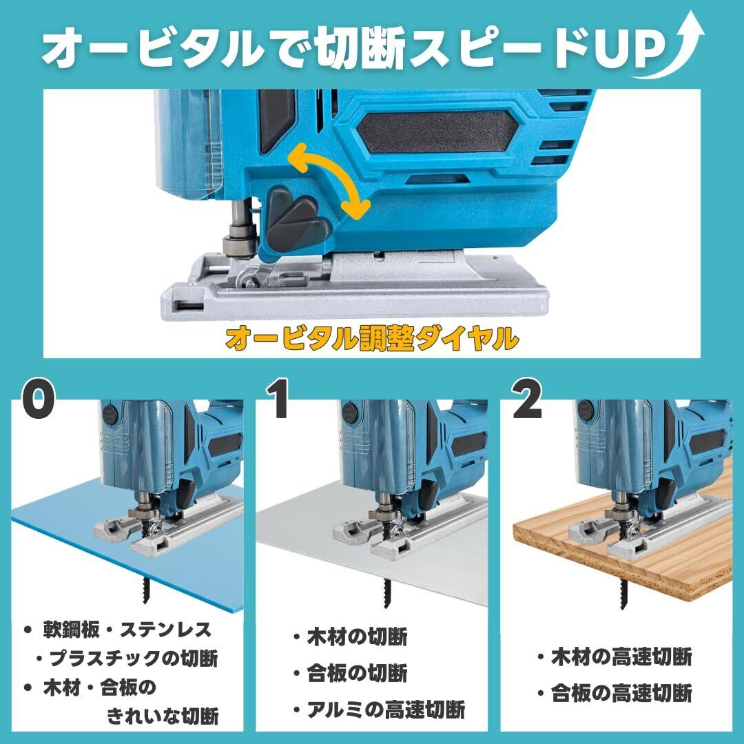 ◆オービタル機構を採用:ストレートと4段階。ハイパワーで厚い材料も楽々切断です。