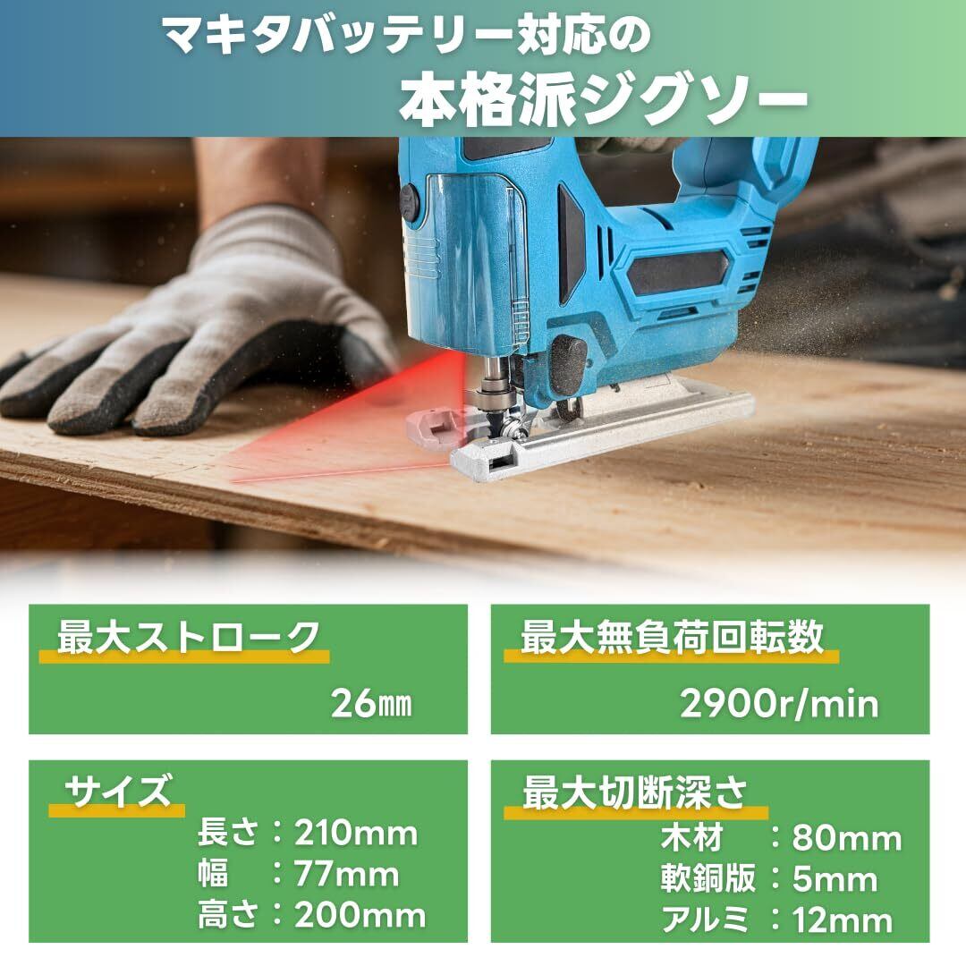 【特価セール】マキタ互換品 ジグソー 充電式 18V バッテリー2個 充電器 セット コードレス 電動のこぎり ストローク26mm 木材80mm切断 オービタル3段階調整 ガイドレーザー搭載 傾斜切断対応 DIY Longsafe JIG02 (バッテリー2個+充電器セット)
