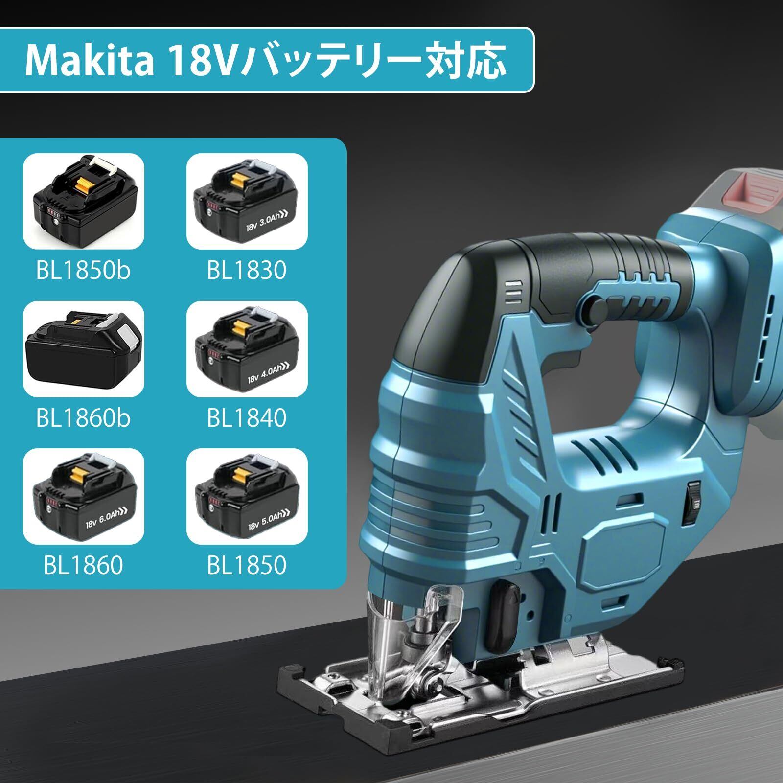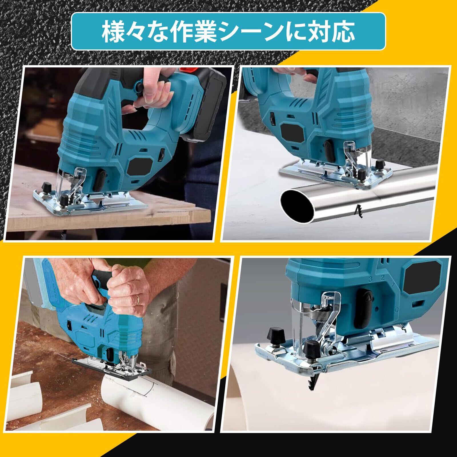 【在庫限り】ジグソー 電気ノコギリ ハイパワー ブラシレスモーター 鋸 コウグ 切断 工具 コードレス LEDライト付き マキタの18Vバッテリーと互換性ある 家庭用 DIY用 ノコギリ/ドライバー/定規付き