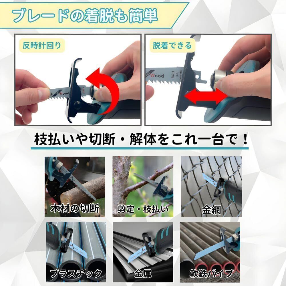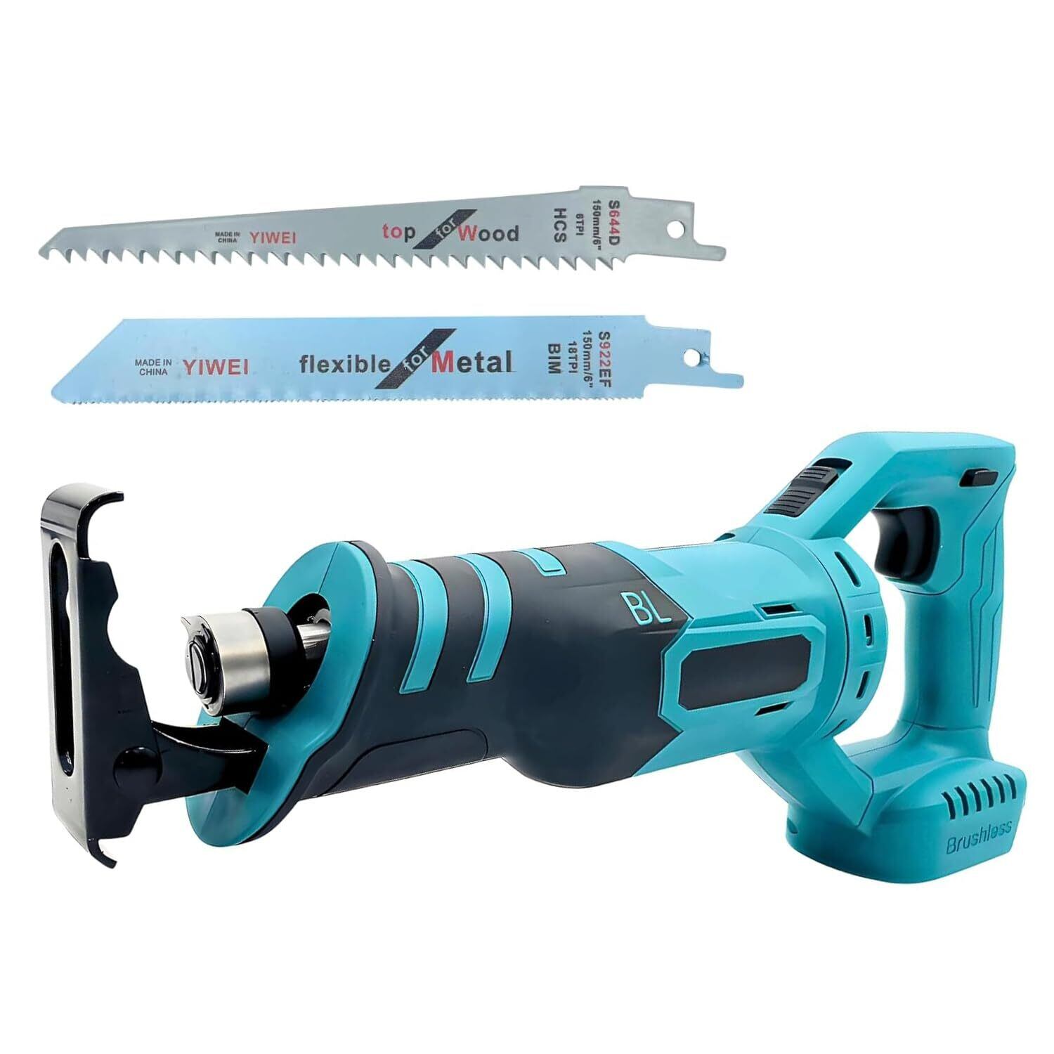 マキタ 互換 充電式 レシプロソー コードレス 電動のこぎり ブラシレス 工具 セーバーソー 生木用 木材 鉄工 18V バッテリー 対応 ※ バッテリー 充電器 別売 (本体+替刃2本)