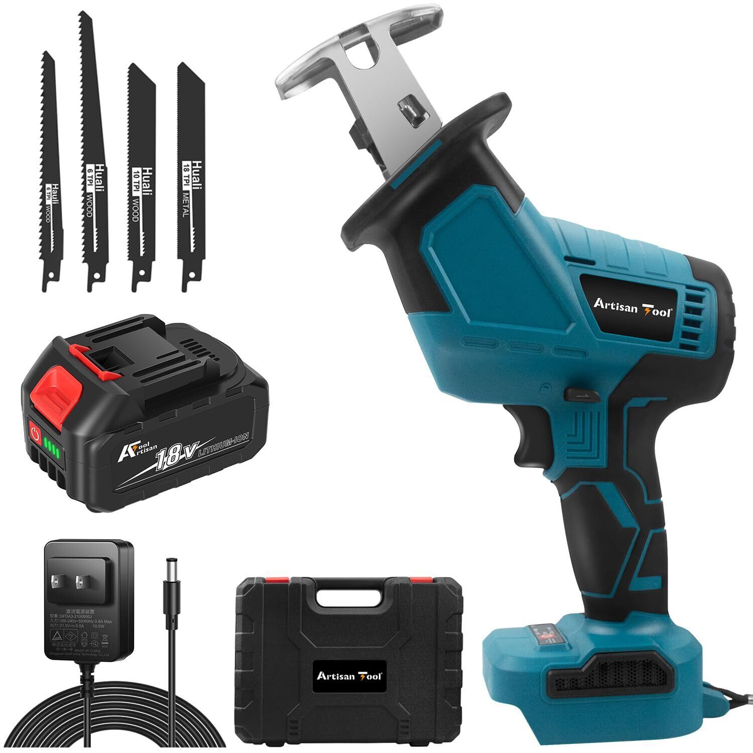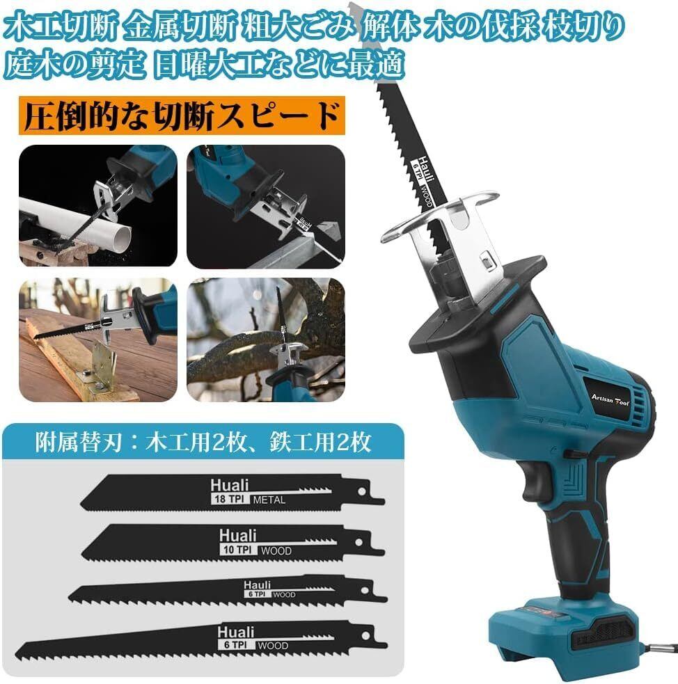 【特別価格】充電式レシプロソー 片手 ATSS01Bセット 収納ケース 替刃4本付き 片手 収納ケース 替刃4本付き 電動のこぎり マキタ18Vバッテリーbl1860bなど使用可能 ブラシレスモータ 無段変速 庭木の剪定 高速切断 DIY 枝切り 粗大ゴミ解体 アルミニウム切断 配管作業 伐採作業 3000mAh バッテリー付き 即使用可能フルセット マキタ互換品