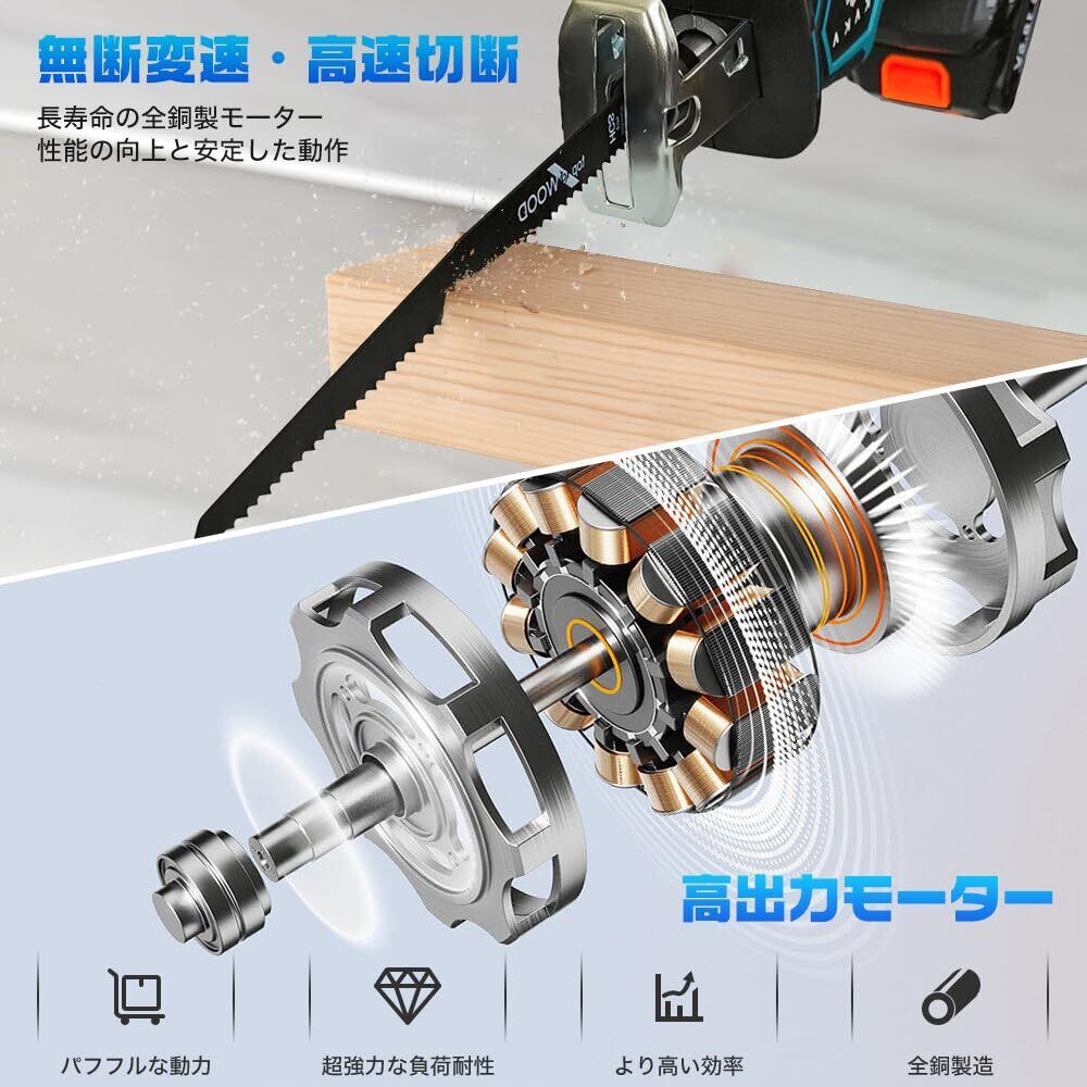 【Hagure Muton】レシプロソー 電動ノコギリ 充電式 無段変速 充電式 小型 軽量 気電のこぎり ノコギリ バッテリー付き 替刃4本 家庭用 木材切断 金属切断 収納ケース 付き (バッテリー1個付き)