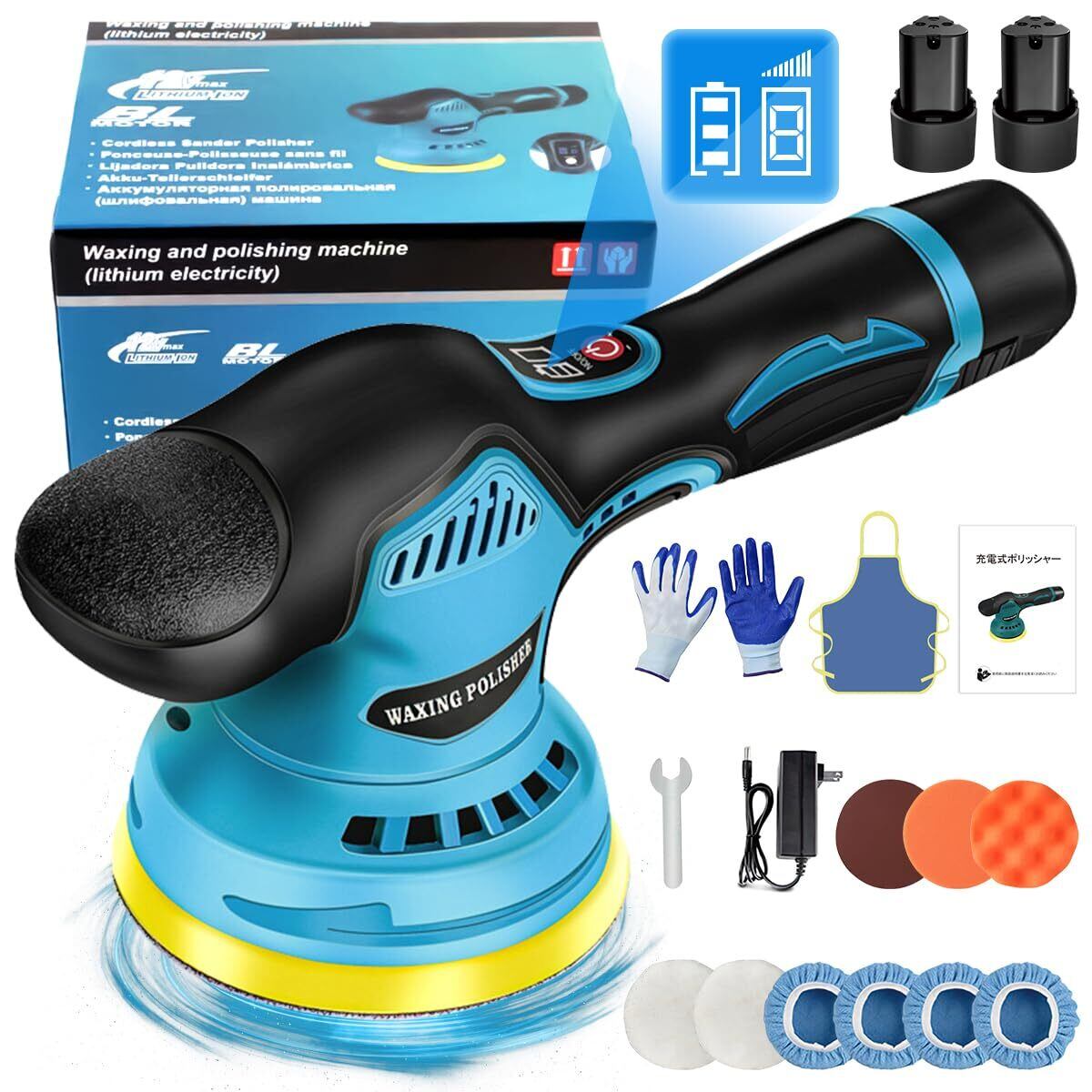 【特価セール】【2025強化版】Bippoer ポリッシャー 充電式 電動ポリッシャー 大容量バッテリ一2個搭載 12V ダブルアクション 車 コードレスポリッシャー 8段変速 5500回転/分 ディスク直径125mm 多機能 研磨機 車磨き 家庭用 艶出し 傷消し 鏡面磨き 豊かな付属品 日本語説明書付き (ブルー)
