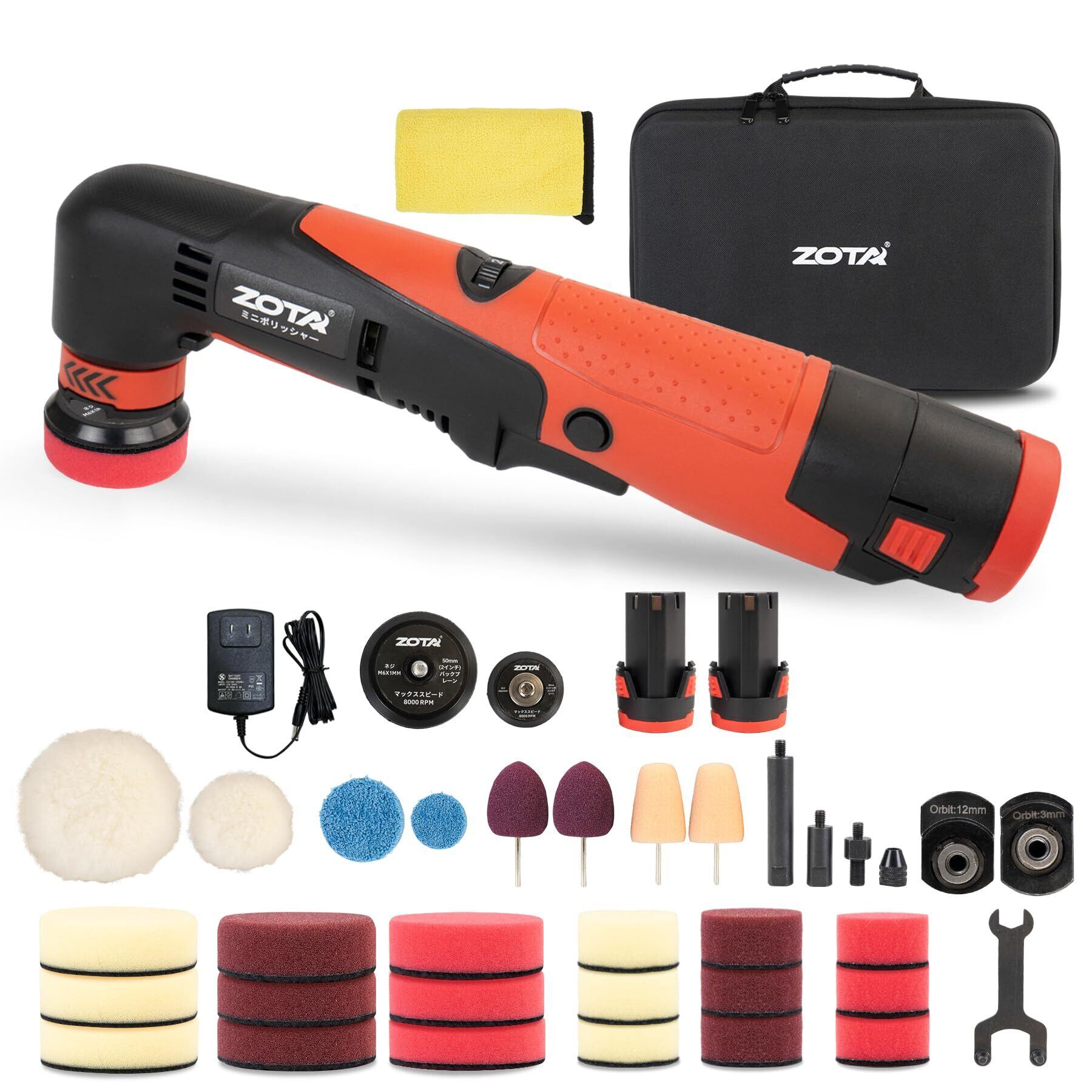 ZOTA ミニポリッシャー,30mm/50mmダブルアクション ポリッシャー コードレス 2800~4500rpm 六段階スピード調整 ダブルアクション/シングル切替 12V 2.0Ahバッテリー2個付属 PSE認証 充電式 収納バック付き ヘッドライト復元/ワックスがけ/バイクケア対応 (DP2A)