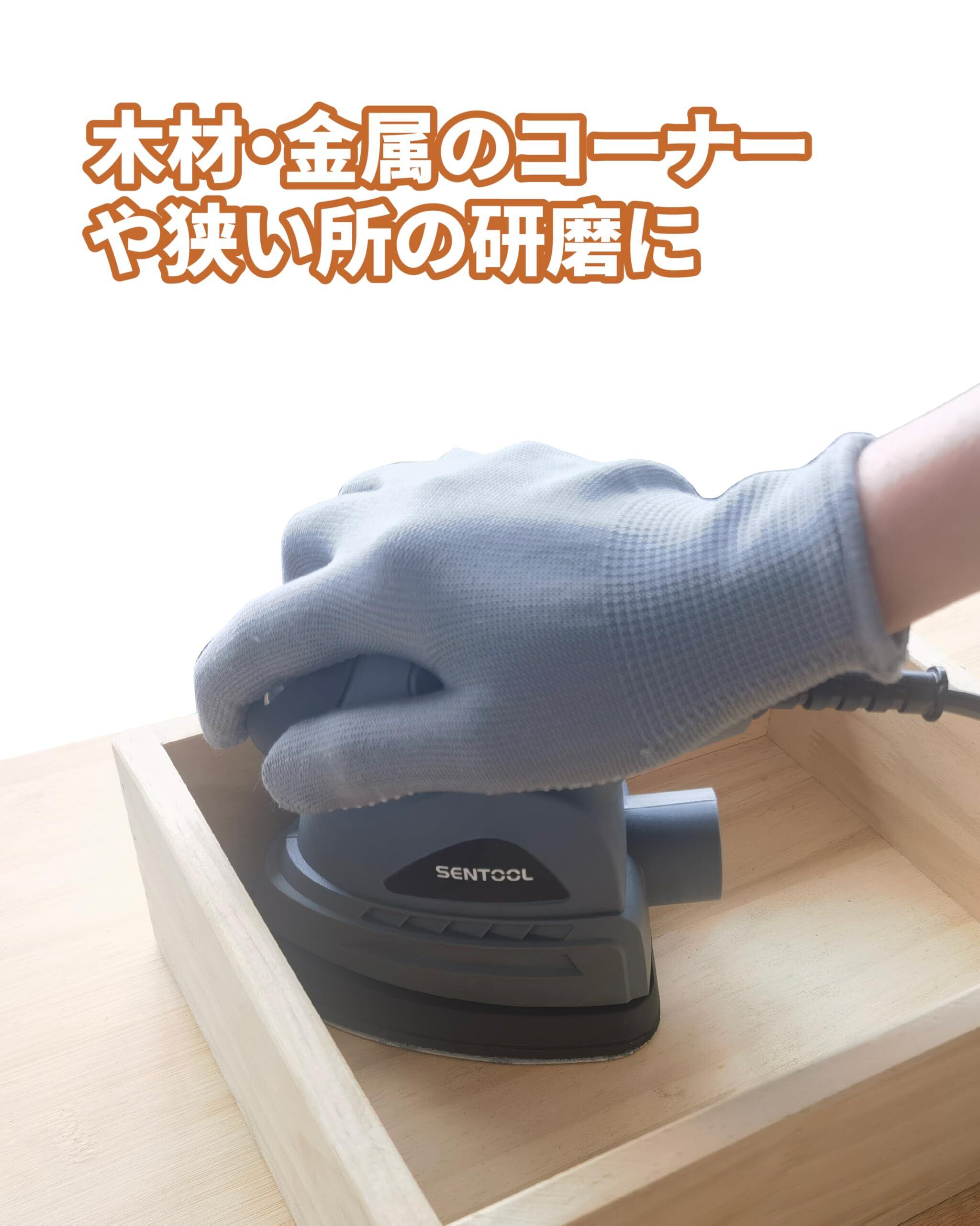 「ミニサイズ」アイロン型の先端でコーナーでもしっかりサンディング、木材・金属のコーナーや狭いところの研磨に。