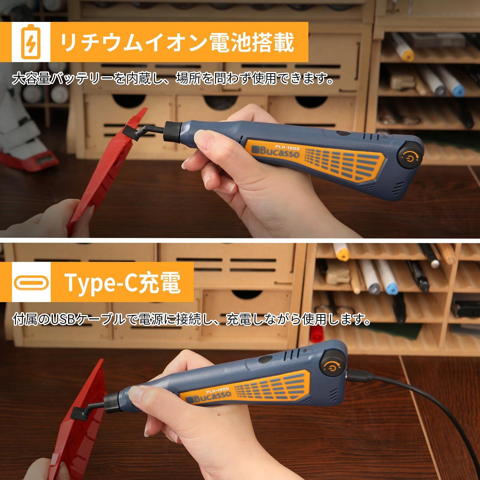 【無段階調速&照明ライト搭載】Bucasso ペンサンダーはパワフルなモーターを搭載しています。1000回転/分から8000回転/分までの無段階調速で、作業内容や材料に合わせて自由に調節ができ、様々な作業に対応してくれます。また、本製品はLED照明ライトが付き、光が弱いところも作業でき、とても便利です。細かいところ、よく見えないところ、照明らいとを使ってもいいです。