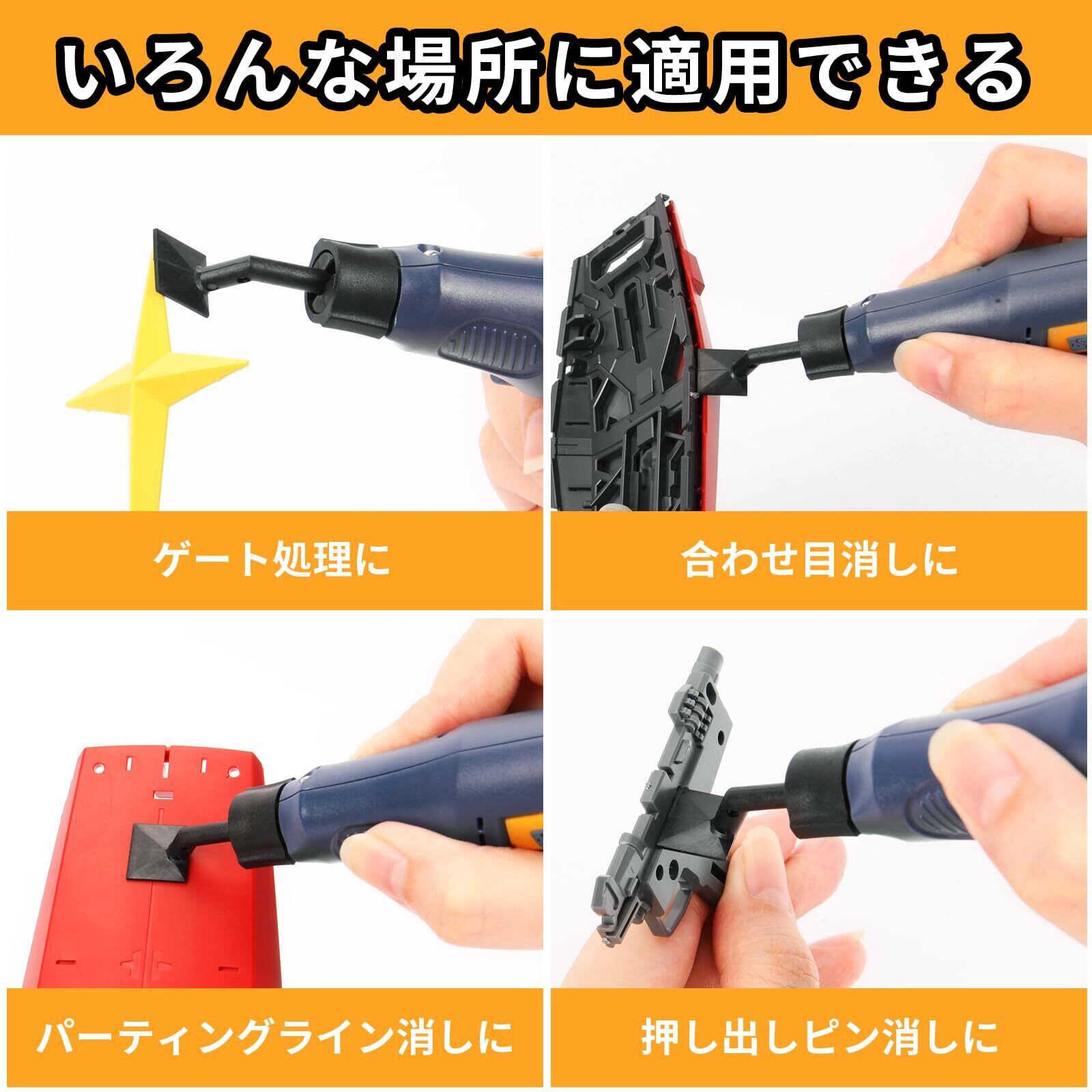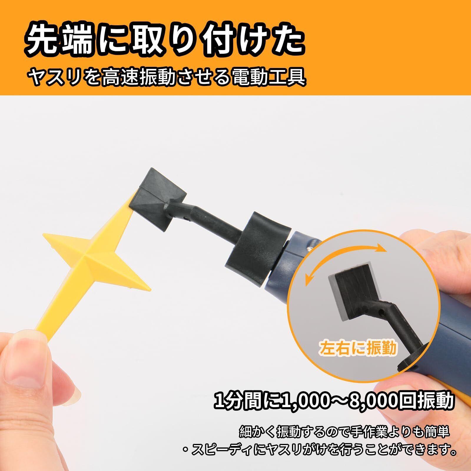 【さまざまな素材や用途に対応】プラモデルやミニ四駆のプラスチックなどのやわらかい素材のヤスリ掛け・仕上げ作業に。細かく振動するので狭い所、コーナー、小さくくぼんだ所の研磨に最適です。