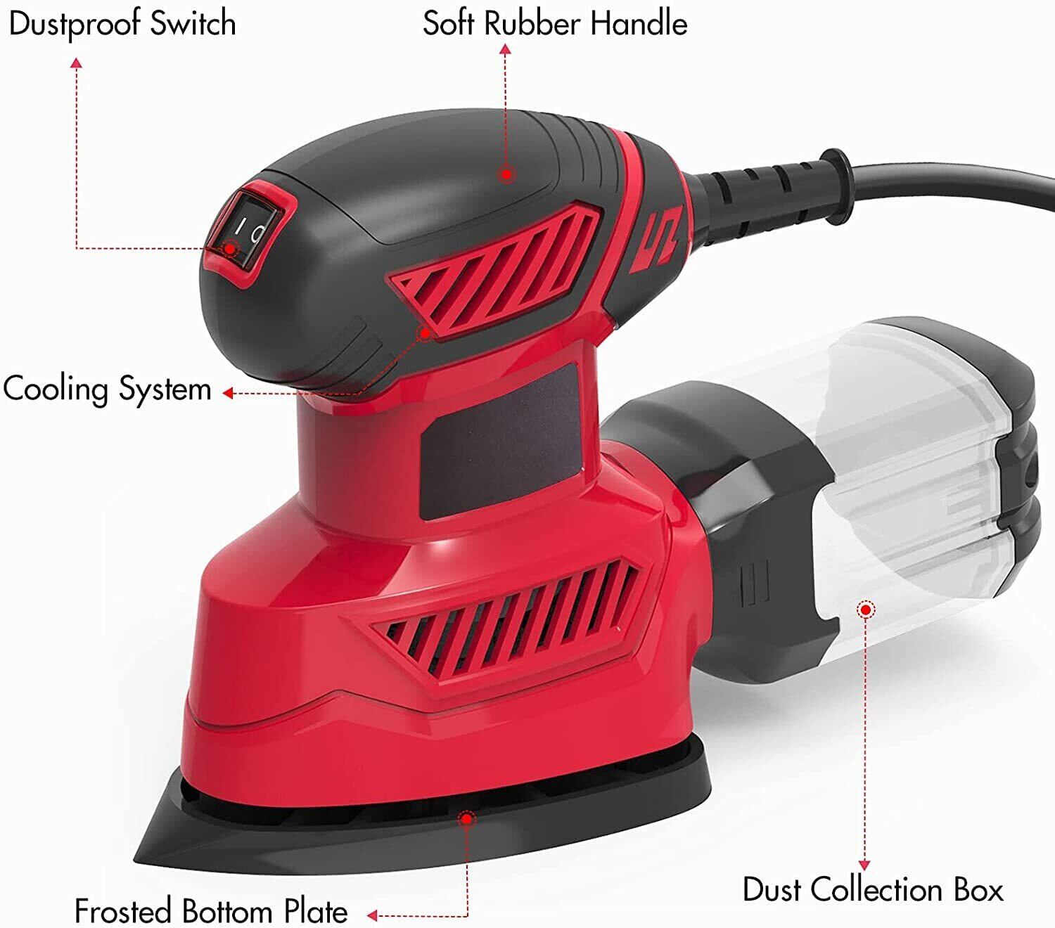【梱包内容】:1 * 14000RPM 130W サンダー、1 *透明ダストボックス、1 *掃除機接続アダプター、20 *サンダーペーパー(60/80/120/180/220グリット各4個)
