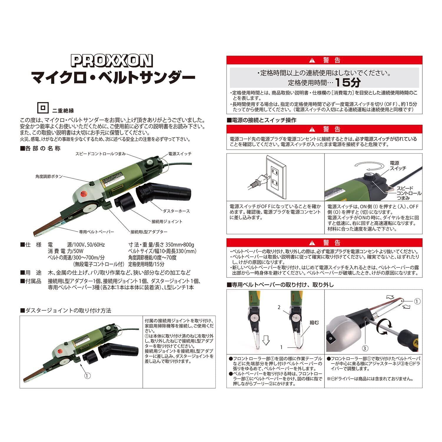 プロクソン(PROXXON) マイクロ・ベルトサンダー 電動ベルトサンダー・ヘッド部角度調整可能・無段電子コントロール付回転数が調節可能 No.27510