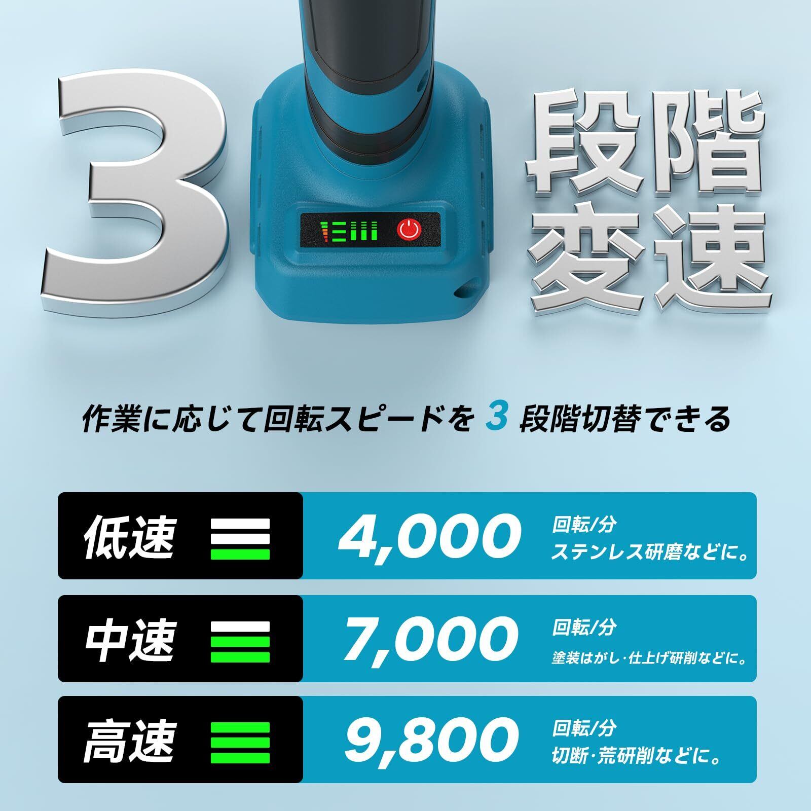 ディスクグラインダー 充電式 18V対応 100mm ブラシレスモーター搭載 3段変速 金属研磨・サビ取り・表面仕上げ・石材/木材切断対応 マキタ18Vバッテリー互換(BL1820/BL1830/BL1840/BL1850/BL1860)本体のみ【バッテリー別売・日本語取扱説明書付き】