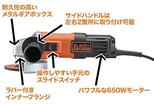ブラックアンドデッカー(BLACK+DECKER) コード式 ディスクグラインダー 砥石径 DIY 電動工具 研磨工具 100mm 軽量 サイドハンドル 100V G650