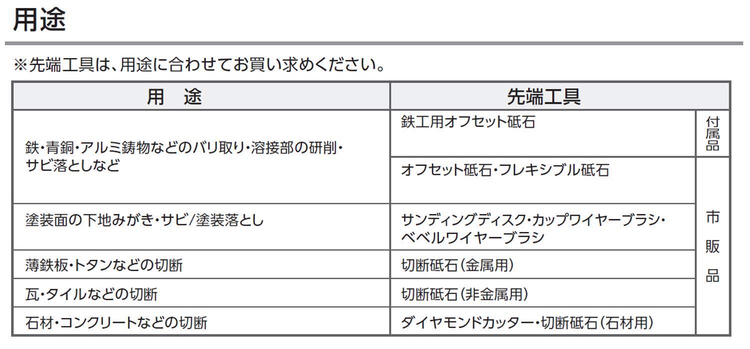 ※付属の鉄工用オフセット砥石は研削用です。切断には使用できません。
