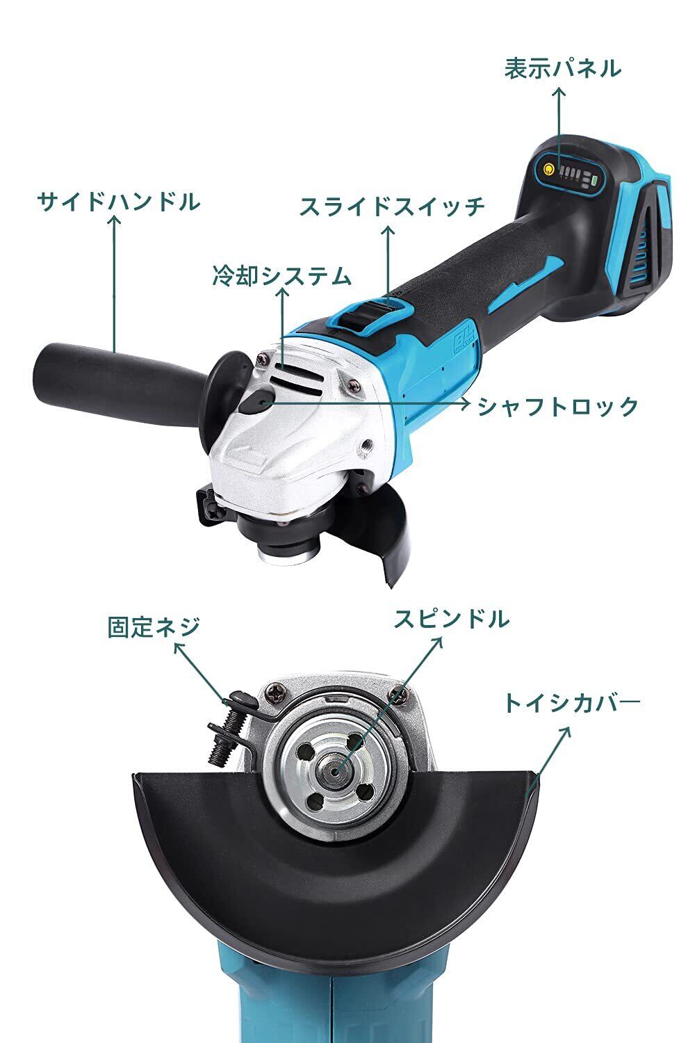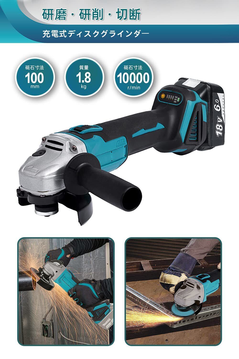【在庫限り】充電式グラインダー コードレス グラインダー 100ミリ ディスクグラインダー 3段階変速型 ディスクグラインダ 電動ラインダー 切断 切削 研削 研磨 アングルグラインダー マキタ18Vバッテリー互換 BL1830 BL1840 BL1850 BL1850B BL1860 BL1860B(本体のみ)
