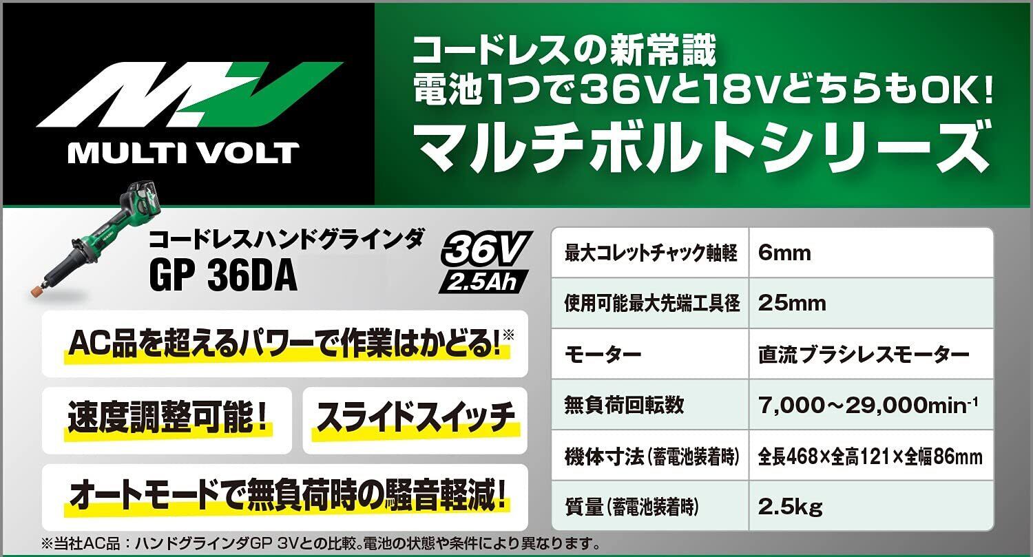 HiKOKI(ハイコーキ) 36V コードレス ハンドグラインダ 軸径6mm 7,000~29,000回転 ダイヤル式無段変速 スライドスイッチ式 蓄電池、充電器、ケース別売り GP36DA(NN)