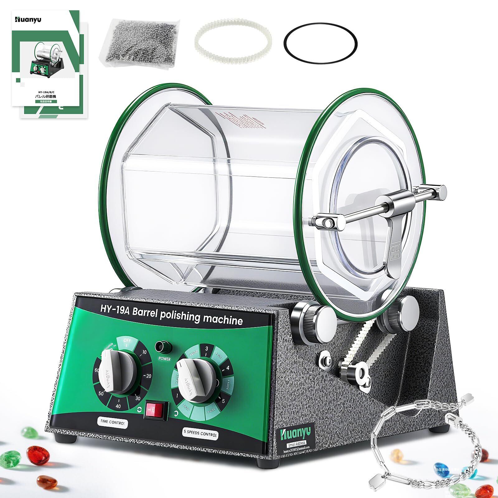 【2025最新】Huanyu バレル研磨機 チェンジバレル研磨機 3kg容量ロータリーバレル 五段速度調整 タイマー付き アクセサリー/小物/天然石/金属/パーツ研磨 面取り サビ取り (小型)