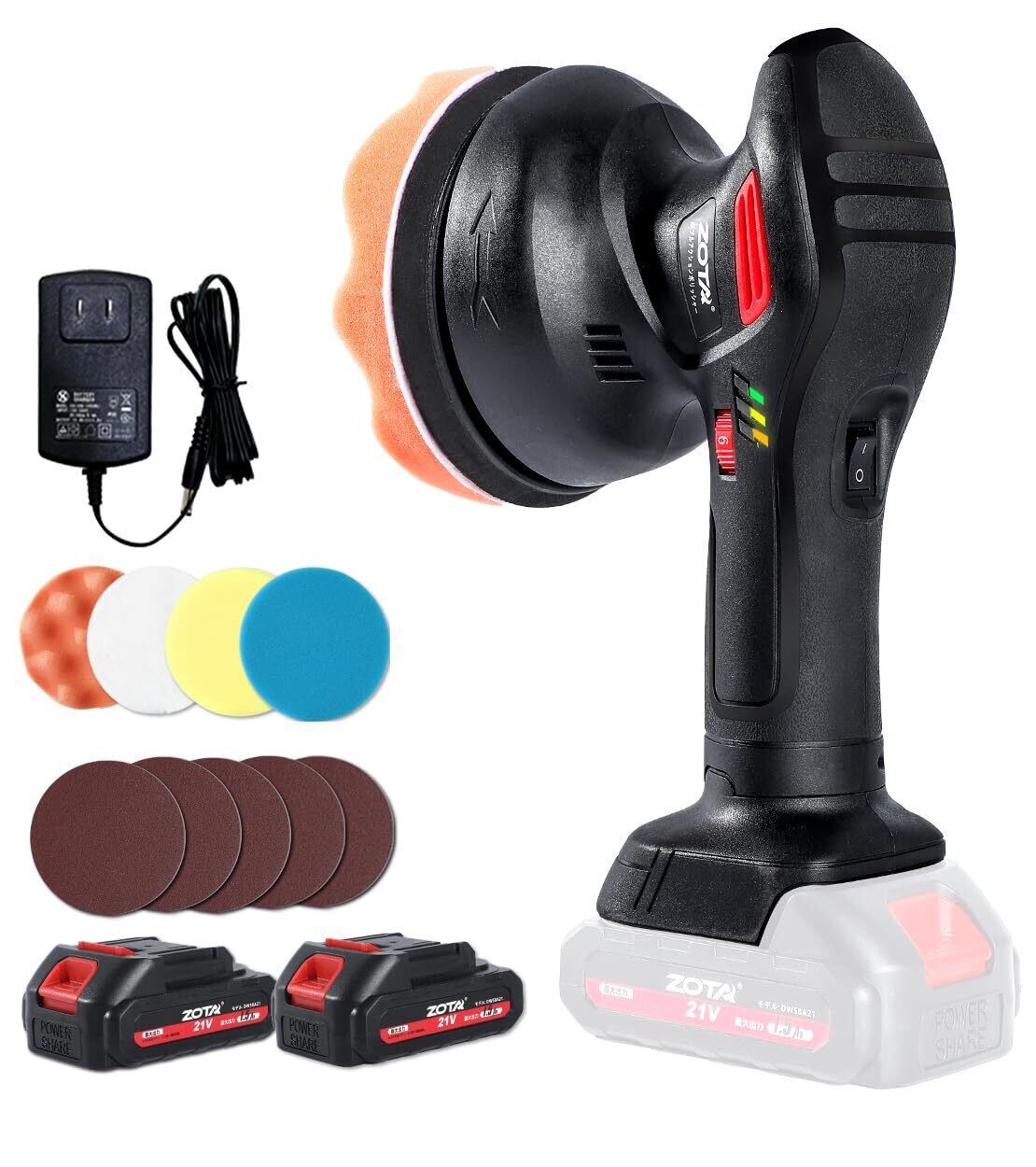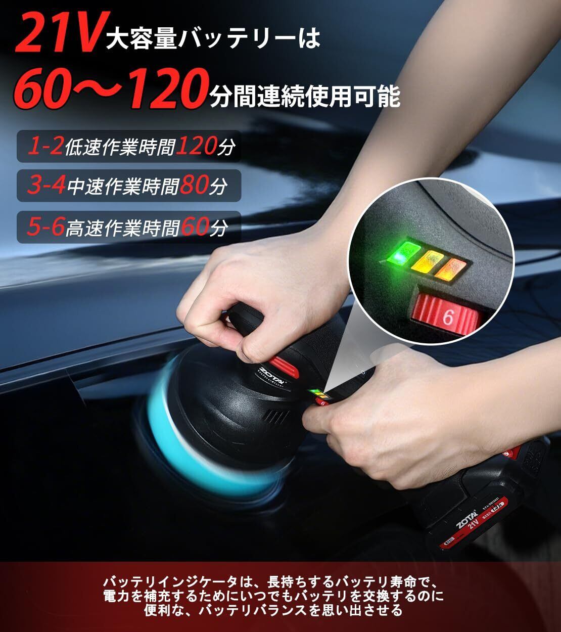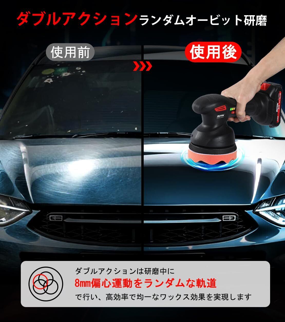 ZOTA ポリッシャー 車,125mm ダブルアクション ポリッシャー コードレス 車用 5インチ 21V 電動 マキタ 18V バッテリー 互換 6600回転/分 残量表示 充電式 ハンディタイプ ワックス研磨 プロ仕様 おすすめ【PSE認証済】