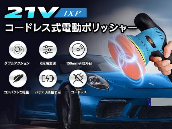 ポリッシャー 車 バッテリ一2個付き 1.5Ah 8段階変速 150mmバフ 21V 電動ポリッシャー 偏心構造 2800-5500RPM コードレス 充電式 ダブルアクション 研磨機 洗車 車磨き 鏡面磨き 傷消し 艶出しワックス作業 豊かな付属品 家庭用