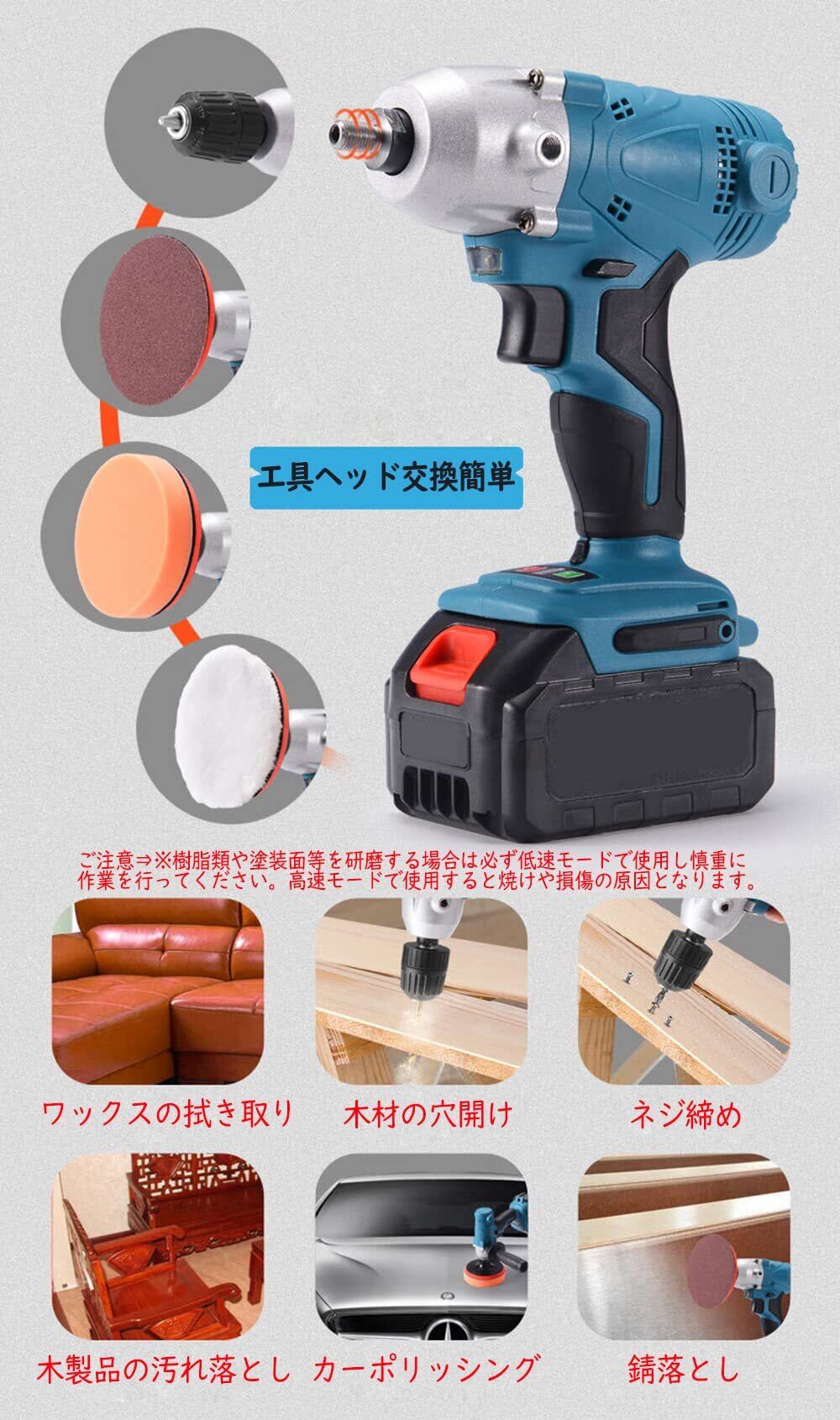 【特価セール】ポリッシャー 18V 充電式 変速 電動カーポリッシャー マキタ 18V バッテリー 互換対応 ドリル ドライバー チャック付き 一台二役 コードレス ポリッシャー 本体のみ 【バッテリー・充電器 別売】 2年間メーカー