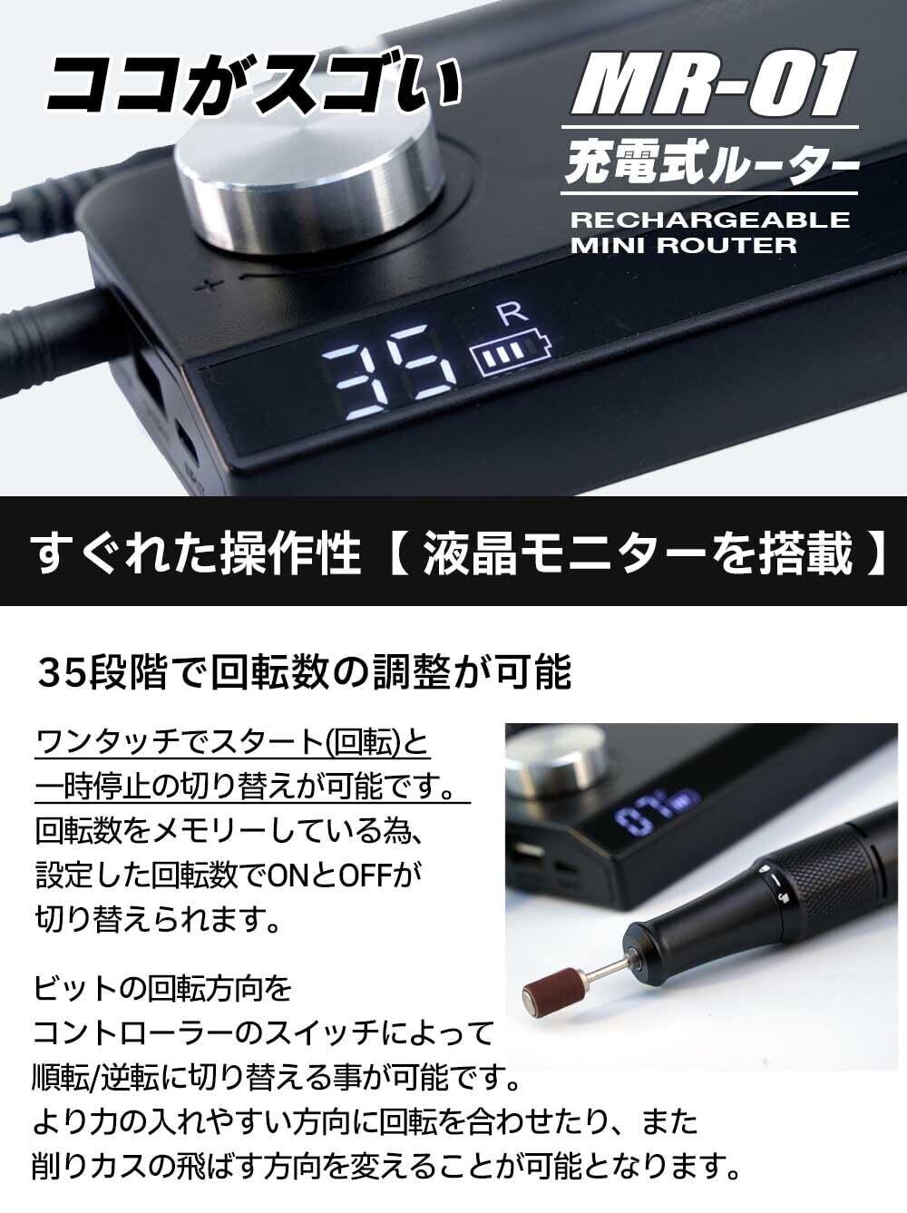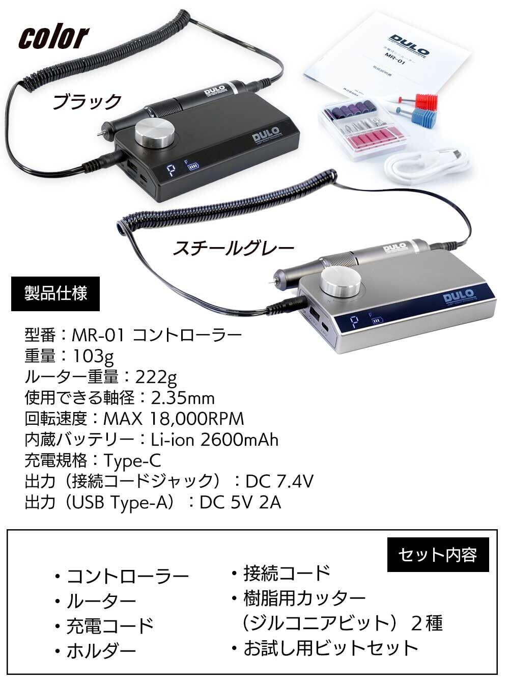 【数量限定】プロモデラーコジマ大隊長愛用中 RAYWOOD DULO MR-01 充電式ミニルーター セット 充電式 usb type-c ビット 樹脂用カッター ジルコニアビット2種付き ビットセット付き (ブラック)