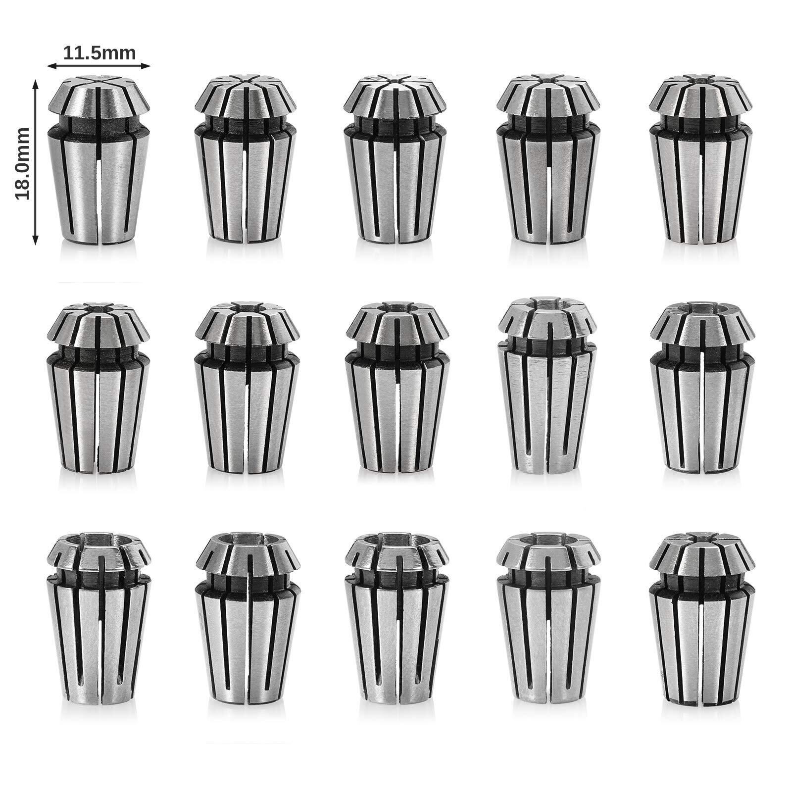 【特価セール】Genmitsu ER11 精密 コレットチャック CNCルーター フライス盤用 鋼製 安定性 1.0mm〜7.0mm 1/4" 1/8" 15個入り