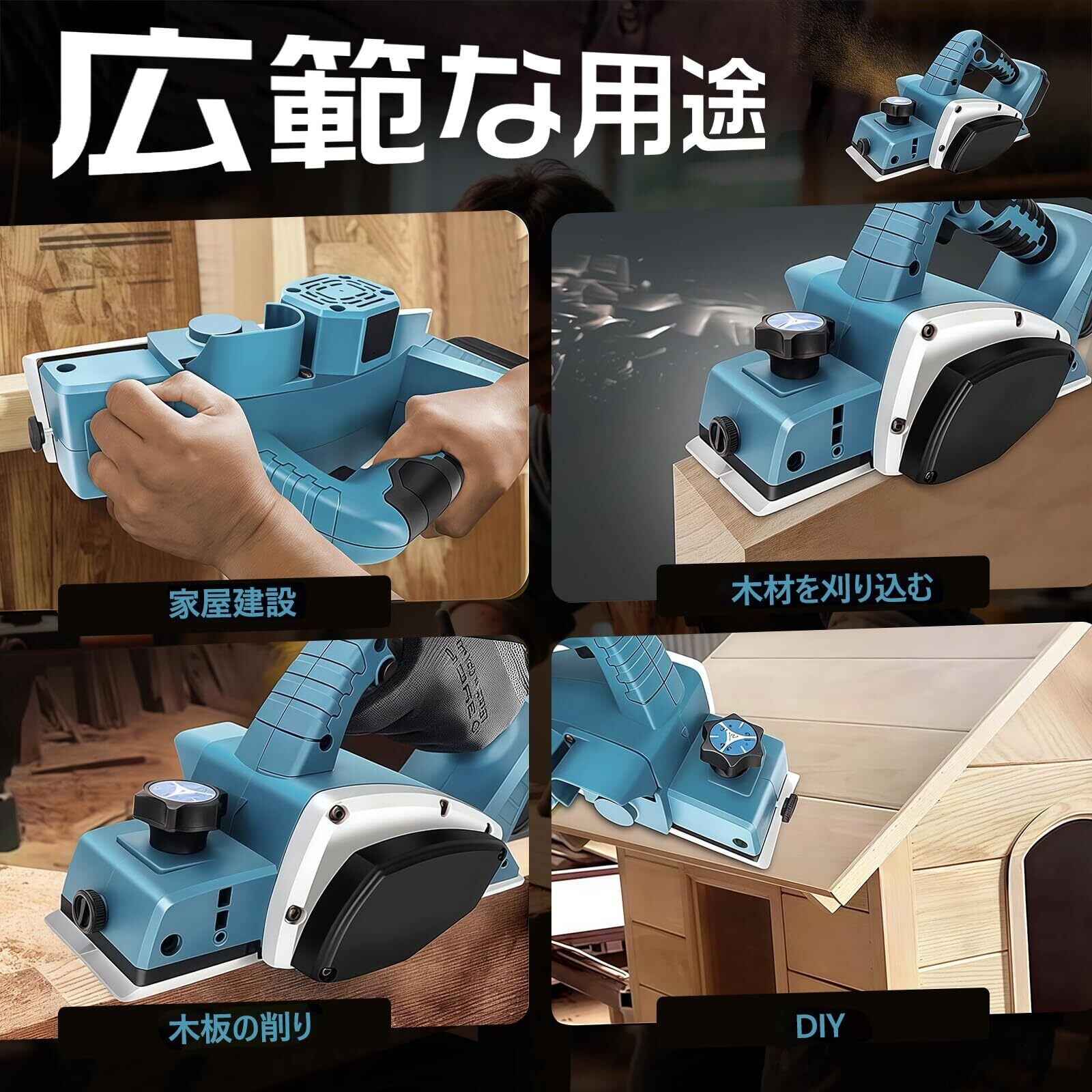 【安全スイッチ設計 & 多様なシーンに】この充電式カンナは安全スイッチ設計を採用しており、工具を作動させるにはオン/オフスイッチと安全スイッチの両方を同時に押す必要があり、誤作動を効果的に防止して潜在的なリスクを低減します。電動カンナは、家具製作、ドアや窓の調整、フローリングの設置、クリエイティブな木工作業など、幅広いシーンに適用でき、無垢材や木質材料の削り、レベル調整、仕上げ作業を処理します。その多機能性により、木工プロジェクトにおける理想的な選択肢となり、プロの現場施工から日常的なDIYまで、安定した性能を提供し、ユーザーが簡単な修理から複雑な構造物までの様々な木工作業を効率的に完了するのを支援します。※ お問い合わせ方法:「アカウントサービス」→「注文記録」→「販売者」→「質問」から弊店までご連絡ください。