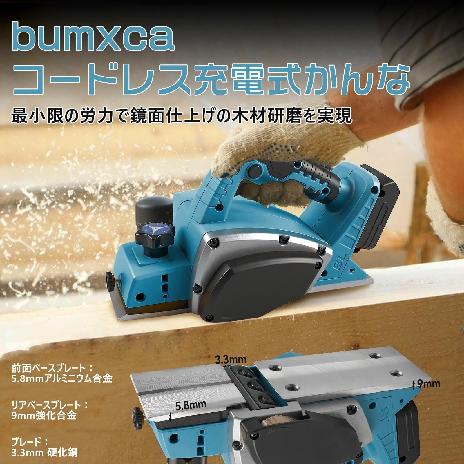 【新着商品】電動カンナ 充電式かんな 【マキタ 互換品】 ブラシレスモーター 【750W高出力 15000RPM 切削幅82mm 0-2mm切削深さ調整可能】 V溝設計 充電式カンナ 電動かんな マキタ 18Vバッテリー対応 コードレス 振動低減 低騒音 小型 安全スイッチ付き 人間工学ハンドル付き 平面削り/相じゃくり/面取り加工 木工工具 日本語取扱説明書 【本体のみ バッテリー別売り】