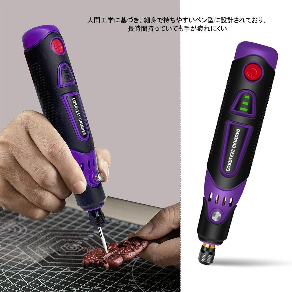 【人間工学設計】ミニルーターは人間工学に基づき、細身で持ちやすいように設計されており、長時間持っていても手が疲れにくい、細かい動きや不便なところでも処理ができる優れものです。ペン型のコンパクトなサイズ(145*30*28mm)、わずか108g軽量の設計で、どこにでも持ち運ぶことができます。