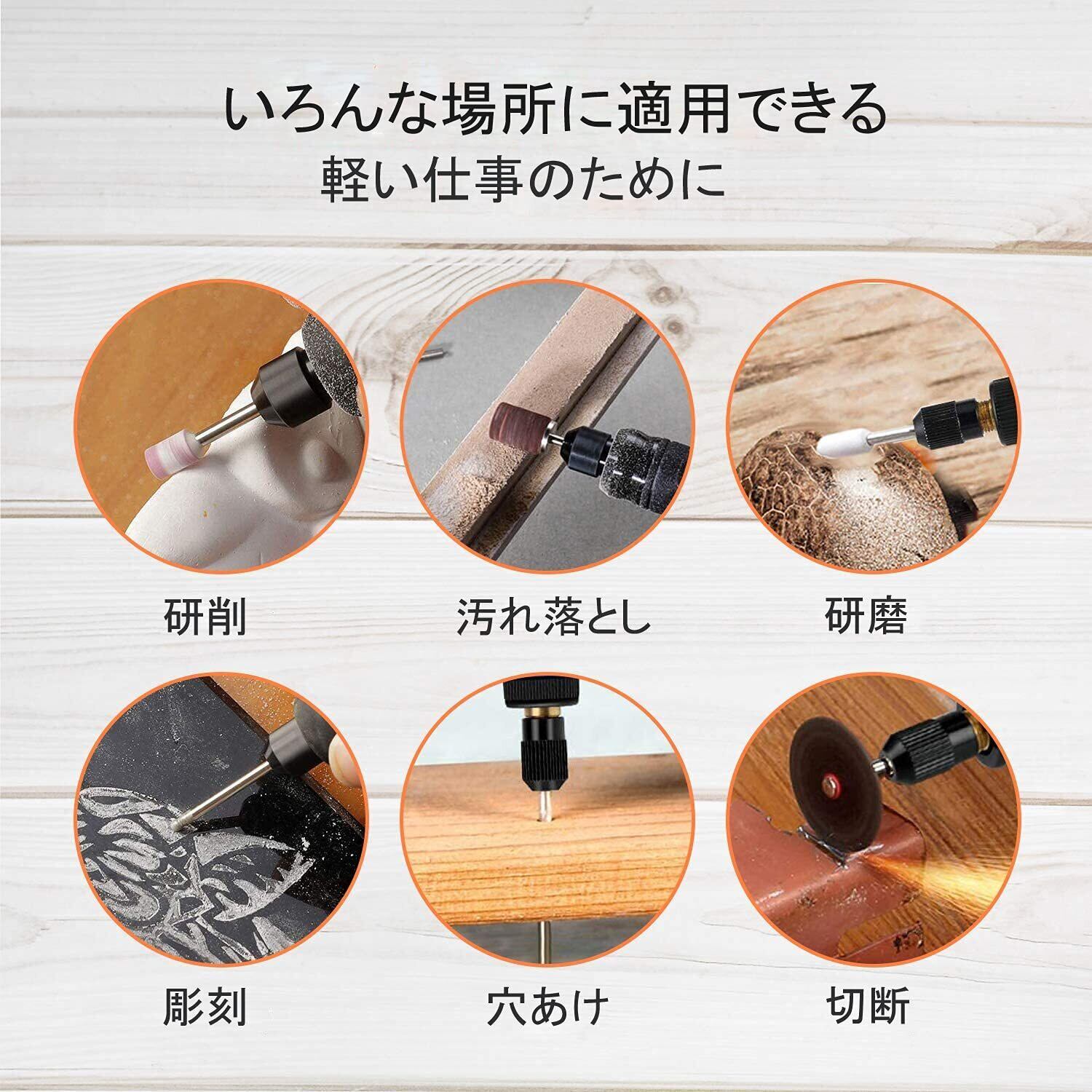 【5段変速可能&低騒音】本りゅーたーは5段階の変速ができ、5000&8000&11000&14000&18000RPM/分に達せられるので、作業内容や材料に合わせて調節でき、最適な回転数で彫刻/穴あけ/研磨/切断/切削/汚れ落としなどの様々な作業を楽々にします。またペンみたいなサイズで、握りやすくて快適さが感じられます。自宅でリューターを使用する場合には、騒音としては少ないですし、自宅で静音性に優れたものとして安心的に使用することができます。
