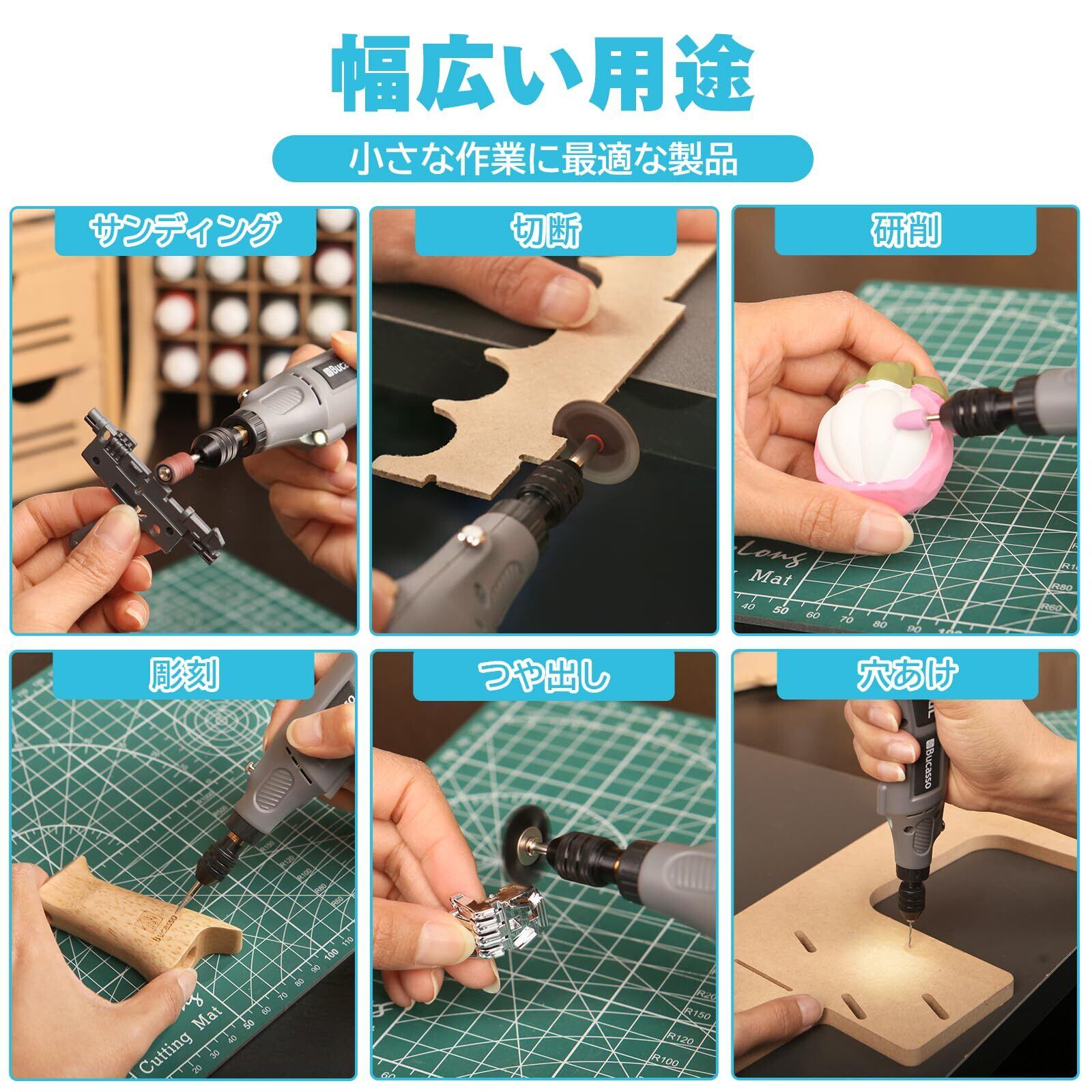【多機能な用途】29 個のアクセサリが装備されており、さまざまなプロジェクトを効果的に完了し、より多くの作業可能性を提供することができます。研磨、磨き、切断、研削、ドリル、クリーニング、彫刻などに非常に適しています。これらのアクセサリーは、他のブランドのグラインダーツールとも互換性があります。