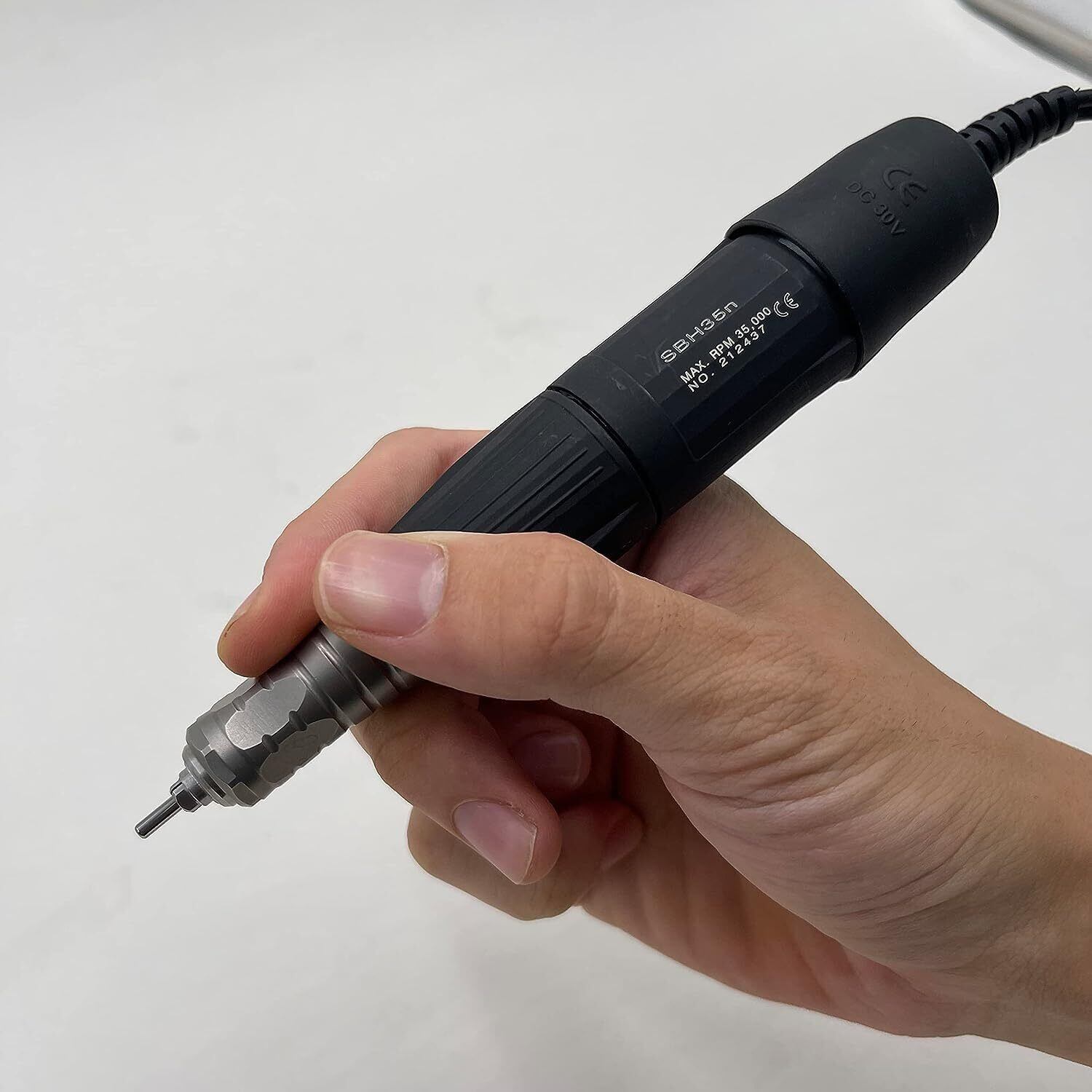 小型で軽量(205g)、細身のハンドピースなので、無理なくペンシルグリップでの作業が可能です。高精度ベアリングを使用しているため振動が少なく、回転精度も高いので、繊細で細かな作業も楽々こなせます。
