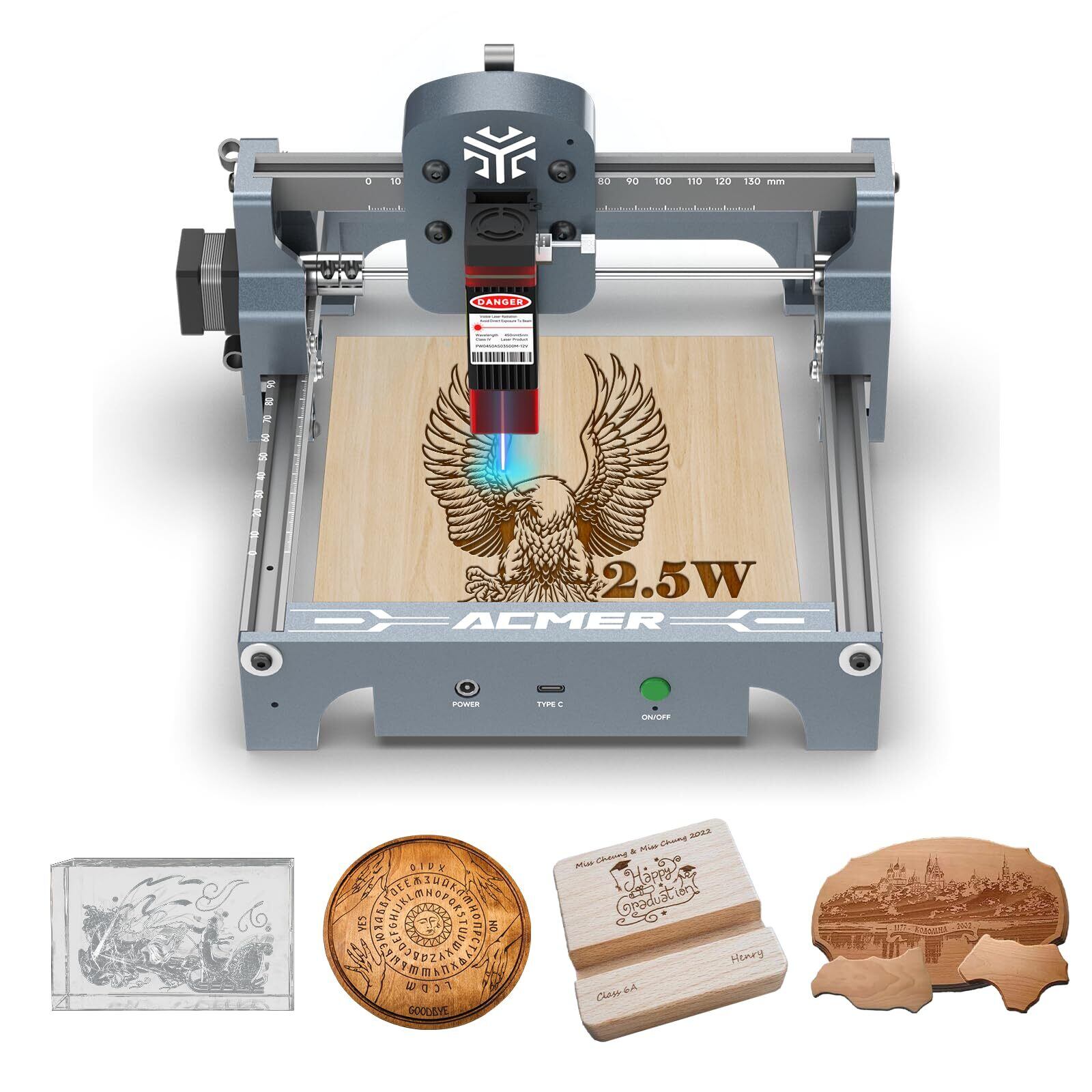 ACMER S1 レーザー彫刻機 2500mW/3500mW/6000mW 入門 初心者 高精度 ミニ 彫刻機 LightBurn と互換性があり 木材、革、タンブラーなどのレーザー加工用 作業領域130*130mm (シルバー, S1 2.5W)