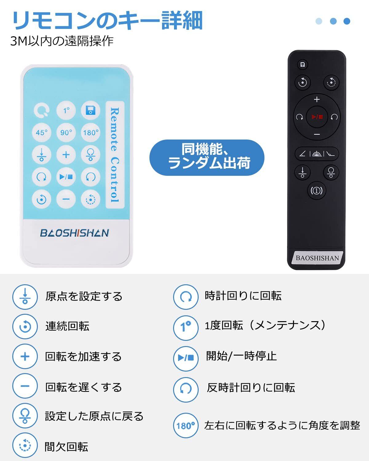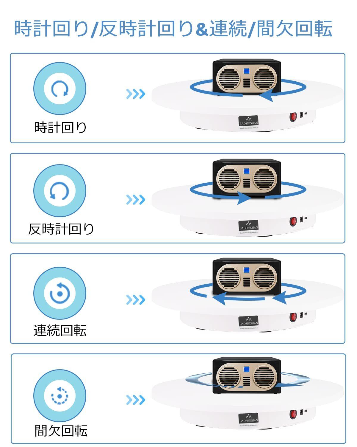 【多機能の遠隔操作功能】電動回転台の回転スピード、方向、角度がリモコンで調整できます。連続回転モードと間欠回転モードこの二つの回転モードがあります。遠隔操作の距離が3mです。