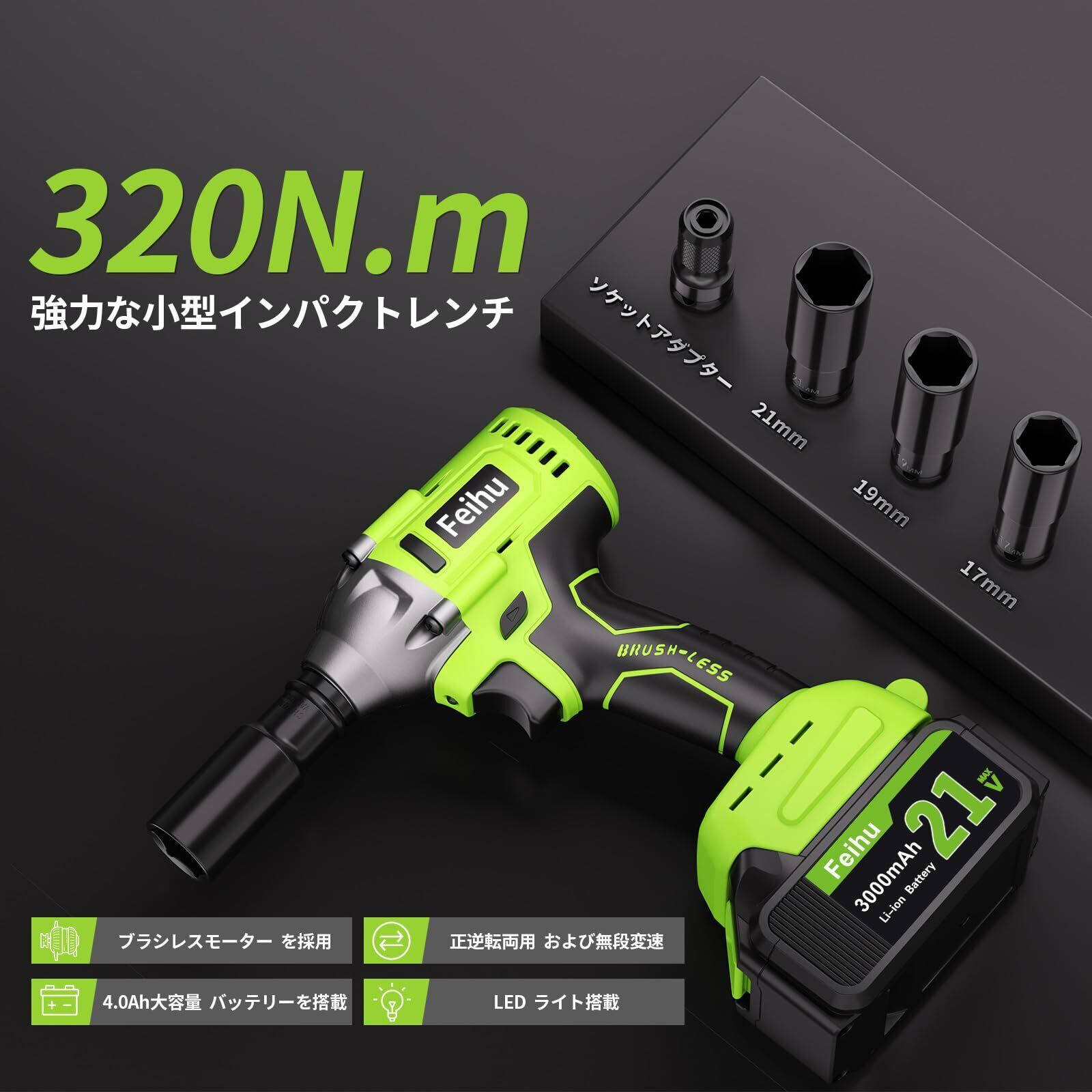 【高トルク320N·m&ブラシレスモーター搭載】 Feihu最新モデルは、高性能ブラシレスモーターを採用。最大320N·mの強力トルクで、固着したボルトやタイヤナットもスムーズに緩め・締め付け可能。高効率・低騒音・長寿命で、プロの整備士にも信頼されるパワーを実現。