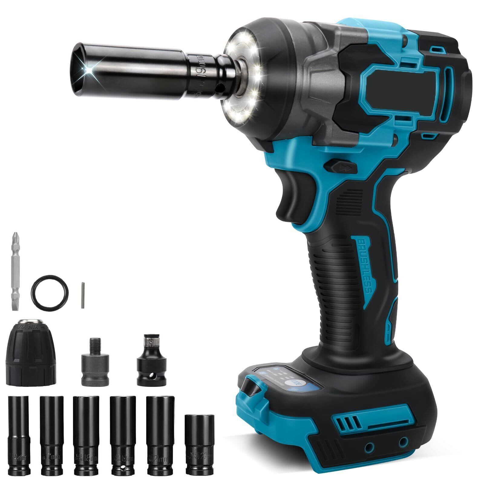 【限定セール】インパクトレンチ 電動 【マキタ互換品】 550N.m 強力 インパクトドライバー 正逆切替無段変速 1/2‘’トルクレンチ ブラシレスモーター コンパクト 軽量設計 充電式 コードレス マキタ18Vバッテリー対応 ナットの締め付け/ボルトの緩み/自動車の修理/ホームメンテナンス/タイヤ交換/ホイール交換 【13点セット】豊かな付属品付き 【本体のみ バッテリー別売り】