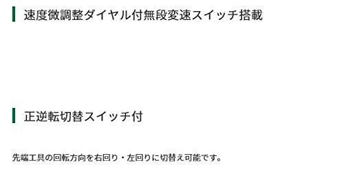 微調整ダイヤルとスイッチの引き加減で回転数を無段階に調整出来る無段変速機構採用!