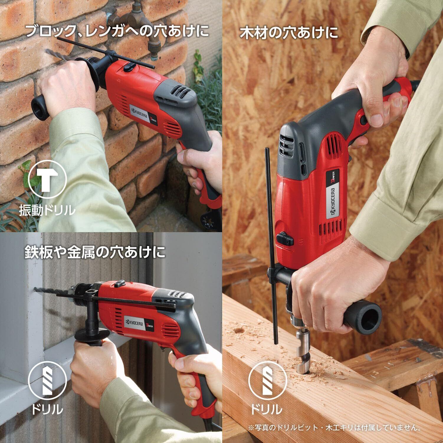 京セラ(Kyocera) 旧リョービ 振動ドリル PD-196VR 645950A 【650Wハイパワーモーター搭載で楽々穴あけ】 穴開け能力 (コンクリート)19mm・(鉄工)13mm・(木工)25mm チャック能力1.5~13mm コンクリート・石材・モルタル・鉄工・木工の穴あけ