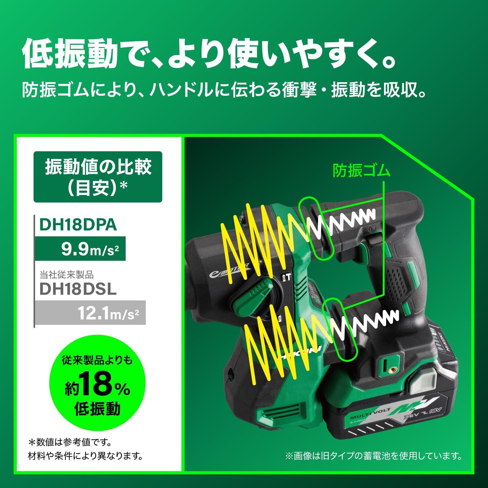 HiKOKI(ハイコーキ) 18V ハンマドリル DH18DPA バッテリー・充電器別売 ケース付 ワンハンドタイプ SDSプラスシャンク 最大穴あけ能力コンクリート18mm DH18DPA(NNK)