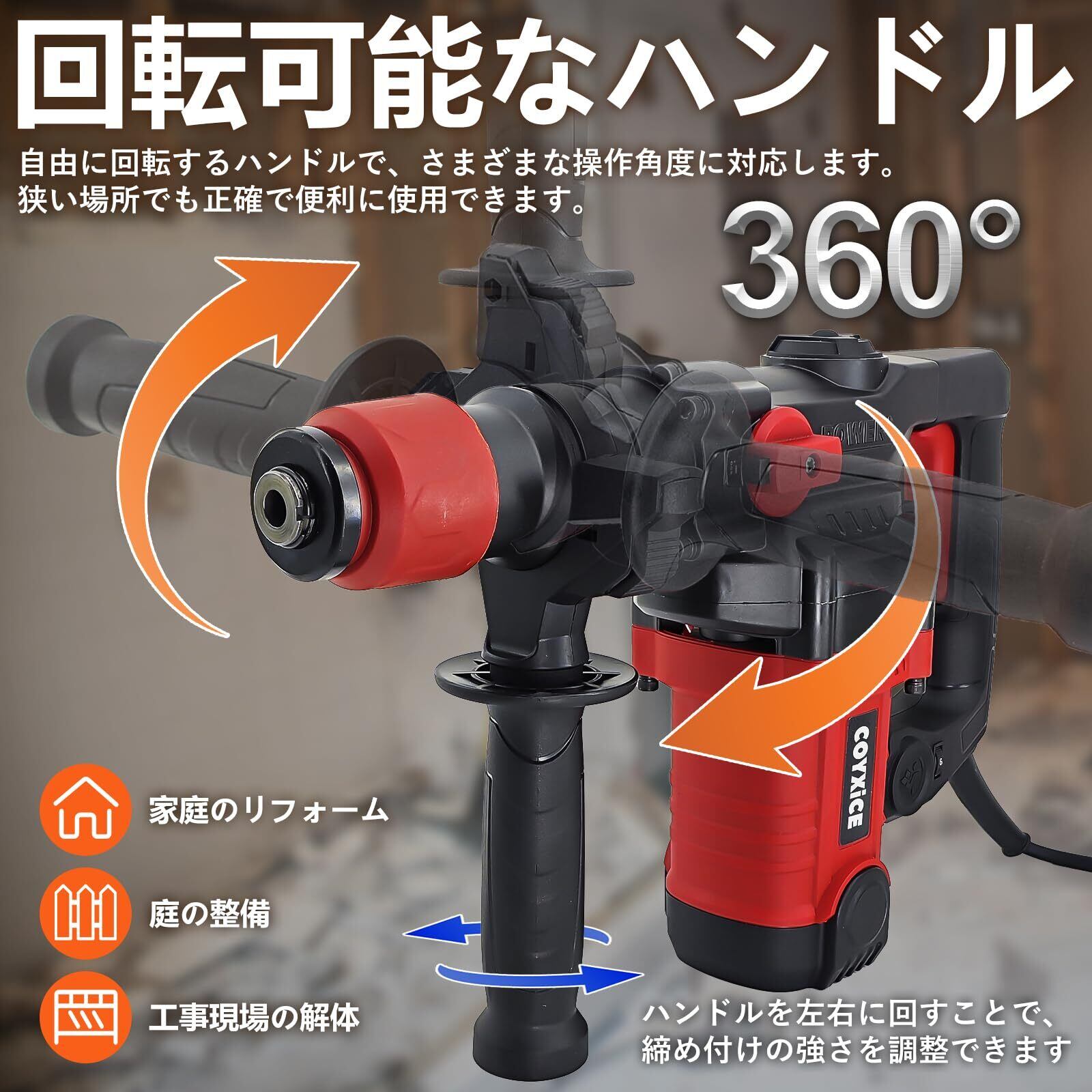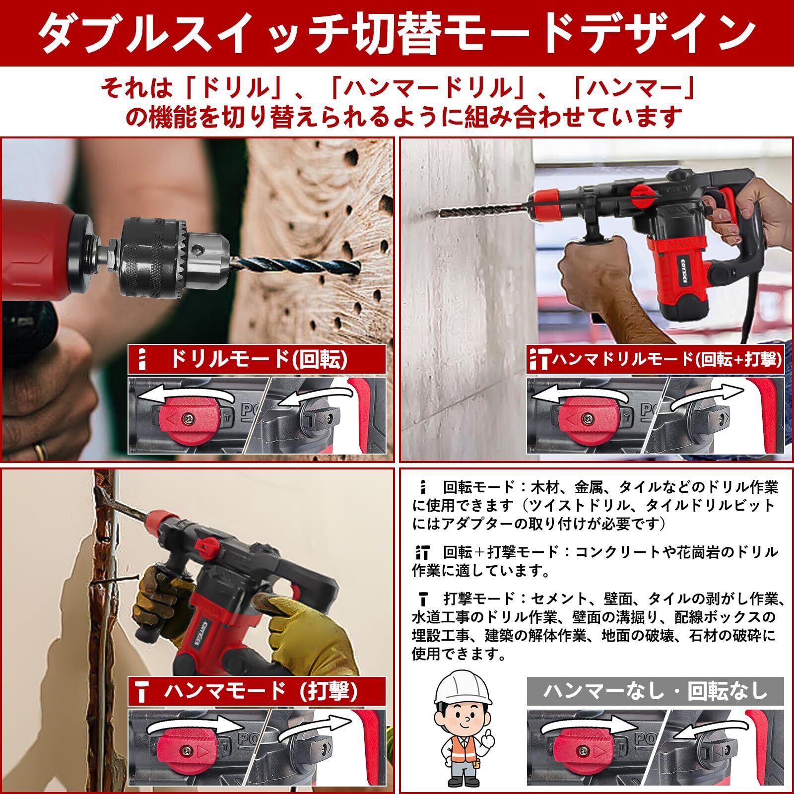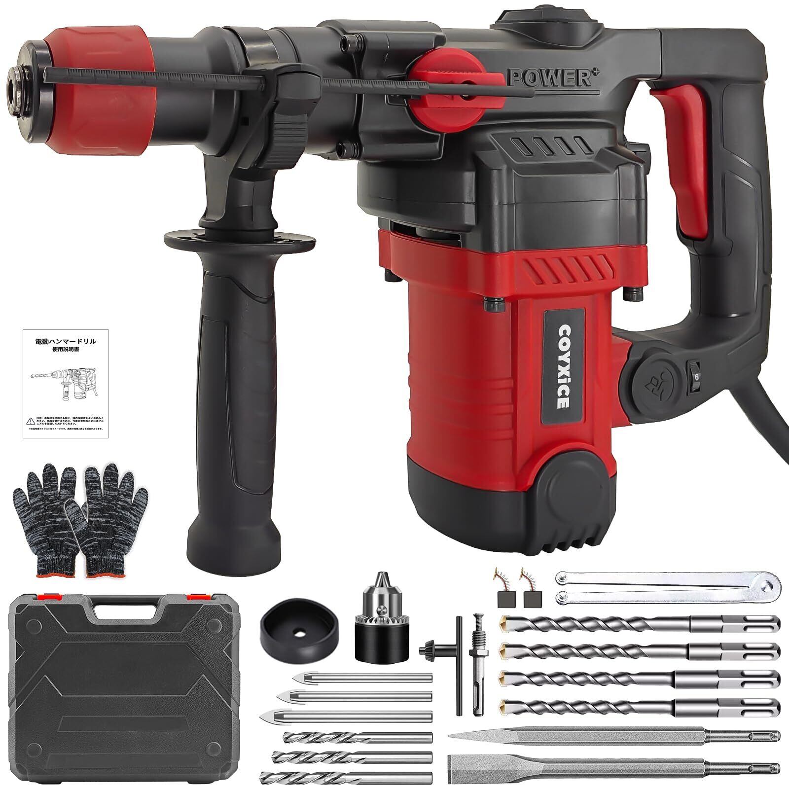 【2025最新】ハンマードリル 2200W 電動ハンマー 110V ドリル 電動 4500bpm コンクリートハンマー 3モード 6速調整 SDSプラスシャンク コード式 低振動機構 ハツリ機 コンクリート レンガ 木材 金属 石材 壁 穴あけ ハツリ(斫り)工事 ツールボックス 各種ドリルビット 日本語の取扱説明書が付属