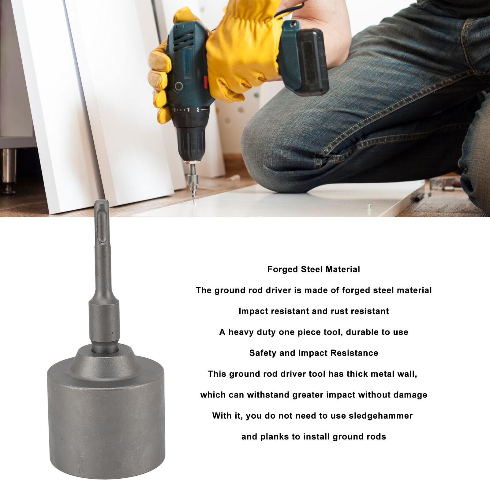 [安全性と耐衝撃性] - この接地棒ドライバーツールの厚い金属壁は、損傷することなく大きな衝撃に耐えることができるため、接地棒を取り付けるために大ハンマーや厚板を使用する必要がなくなります。