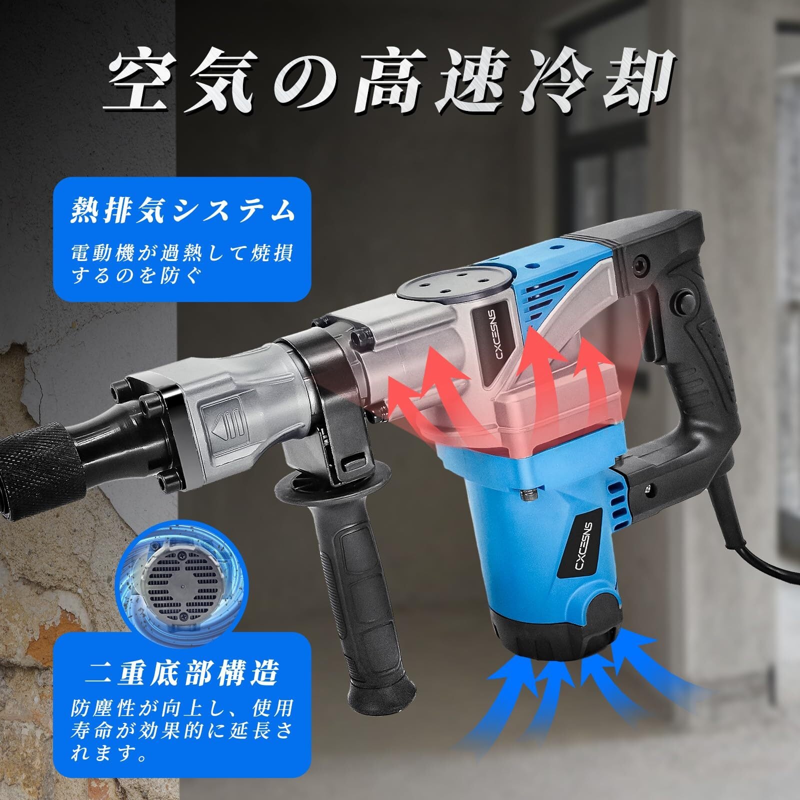 【限定セール】コンクリートハンマー 電動ハンマー はつり機 打撃数4000bpm 電動ピック 強力 電動ハツリ はつりハンマー ハツリ機 単相100V 破つりハンマー (六角軸シャンク) コールドチゼル 溝掘り 建築 自重5.81kg 軽量 専門のコンクリート破壊ツールで 庭の根掘り コンクリート床破壊 家屋の解体 石の破壊 タイルの剥がし