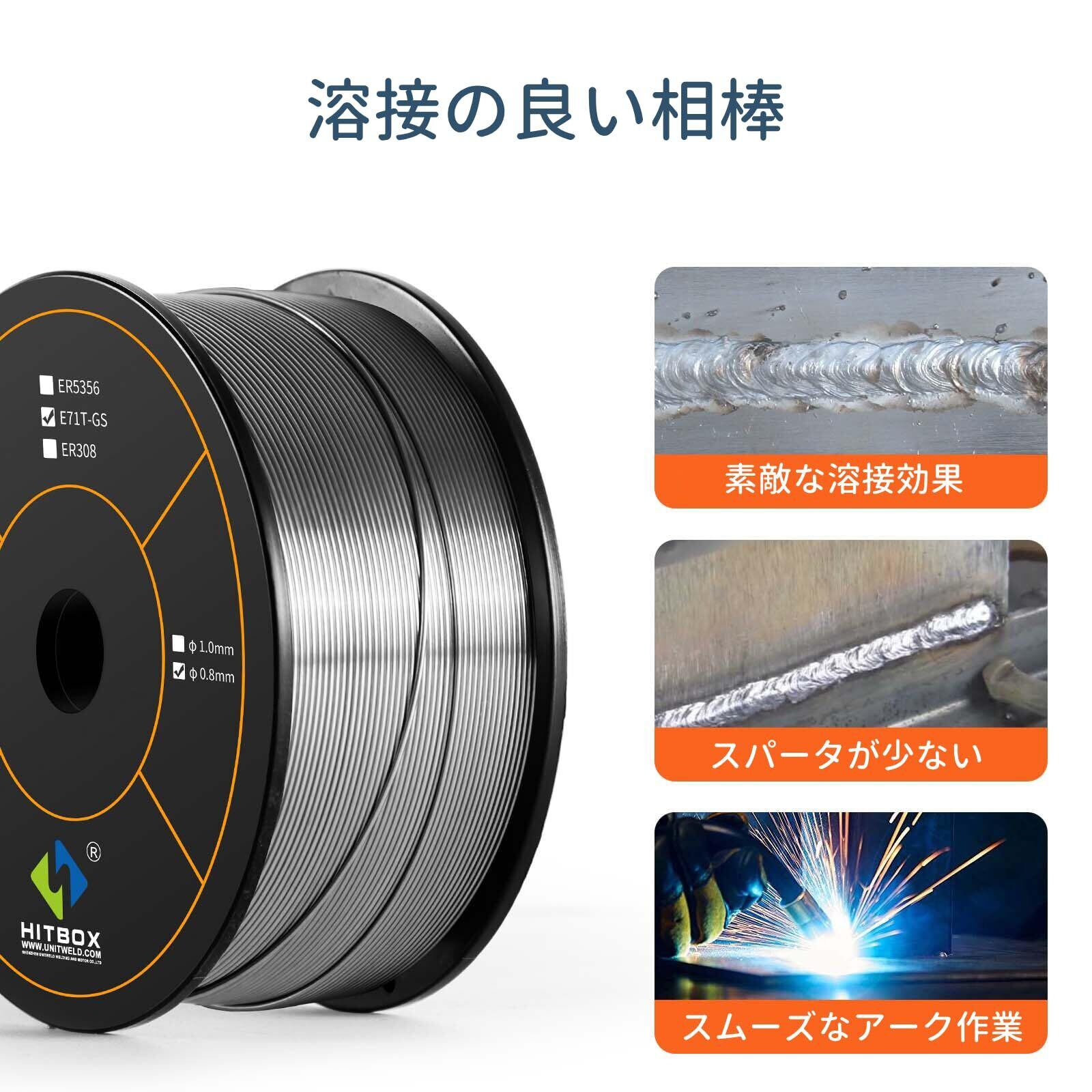 HITBOX フラックス入り 溶接ワイヤー 0.8mm 1.0kg ノンガス溶接 100v 半自動溶接機ワイヤー 溶接 低スパッタ 半自動溶接用 E71T-GS MIG溶接用 ワイヤー スチール 鉄 軟鋼 炭素鋼 (0.8mm*1個)