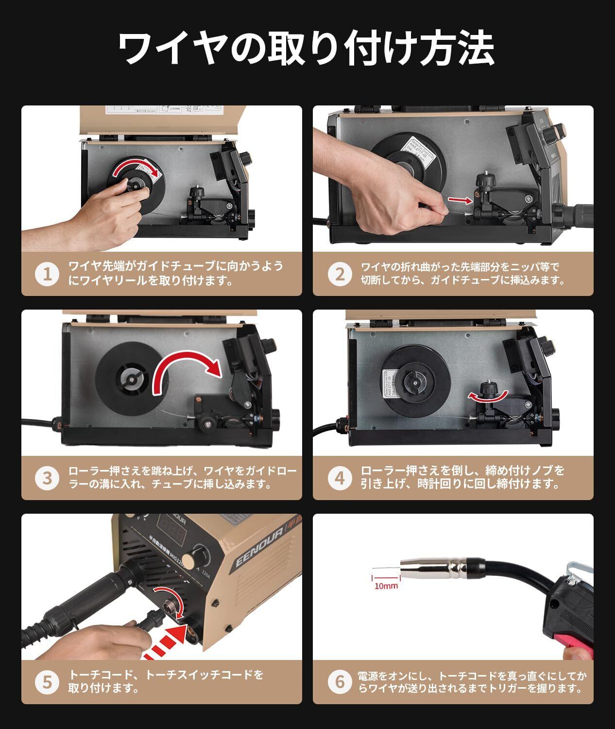 【初めての溶接でも気軽になり】IGBTインバータ制御方式により低電流域から高電流域までアークは安定しスパッタも少なく、誰でも簡単に溶接でき、しかも綺麗な仕上がりが得られやすいです。実物写真付き日本語取扱説明書と操作の案内図が付属しており、ワイヤの取り付け方法と使用注意などが一目瞭然、初心者の方でもすぐに使い始められます。