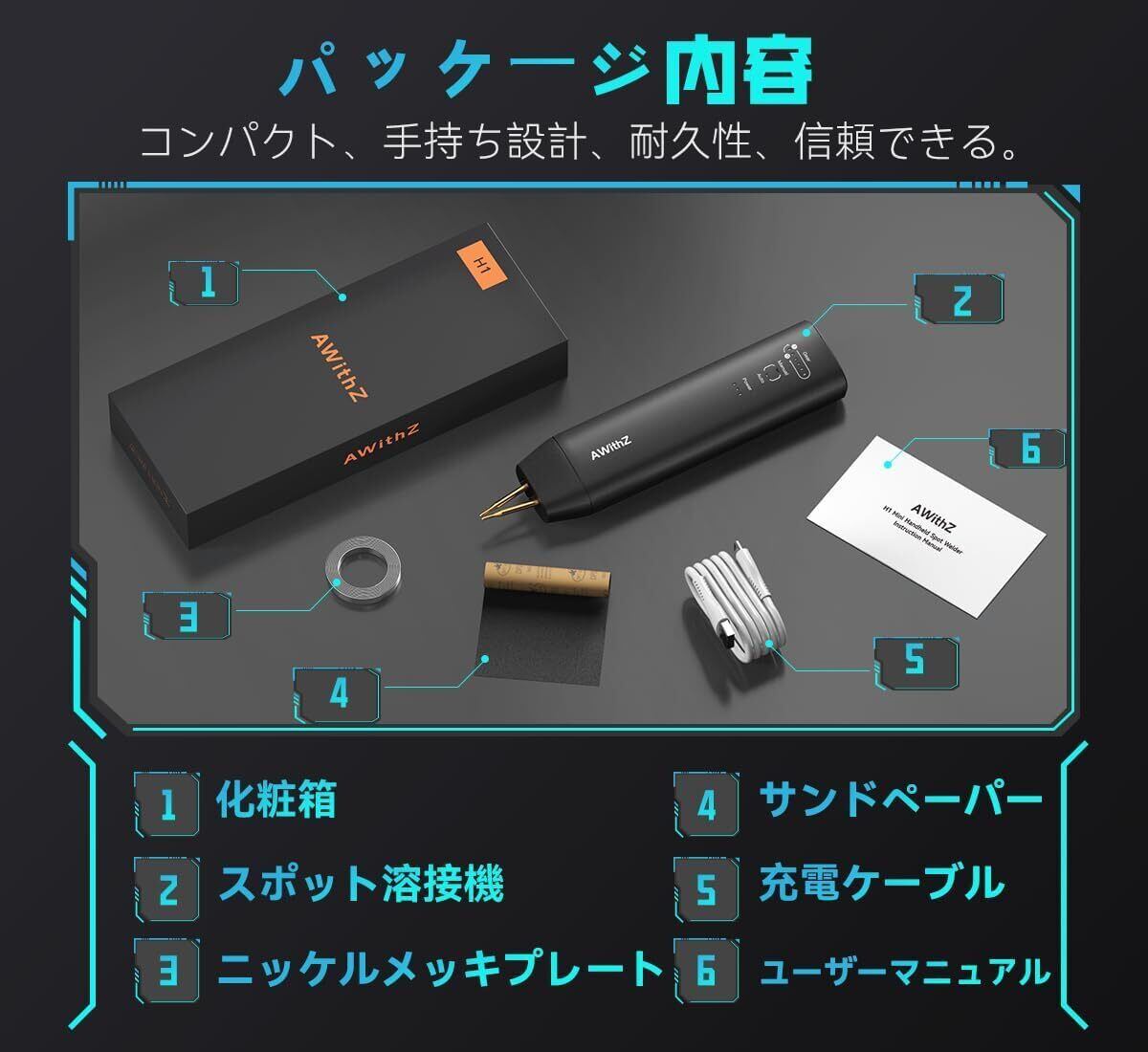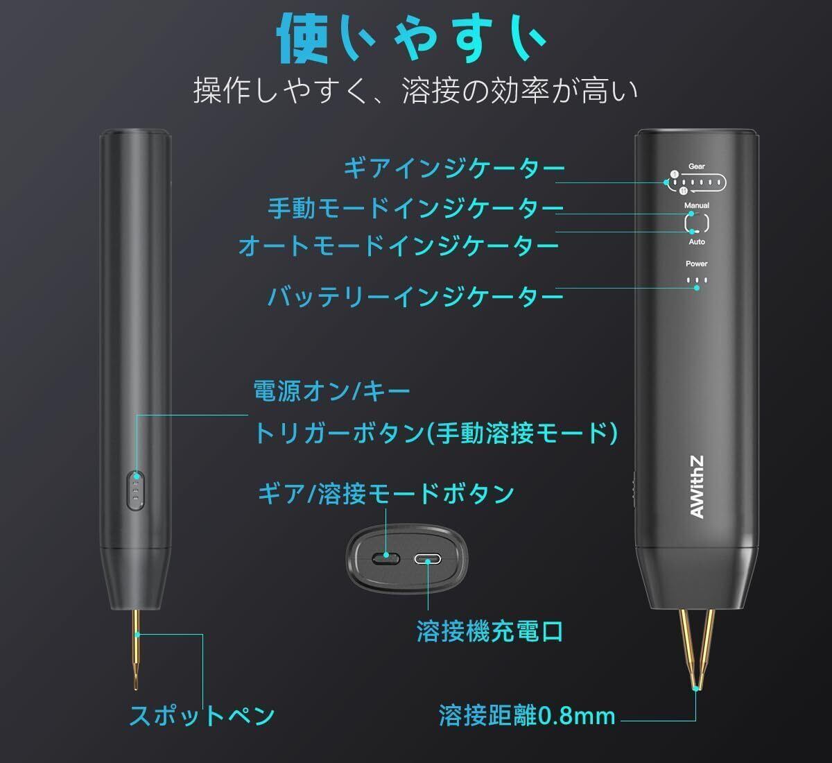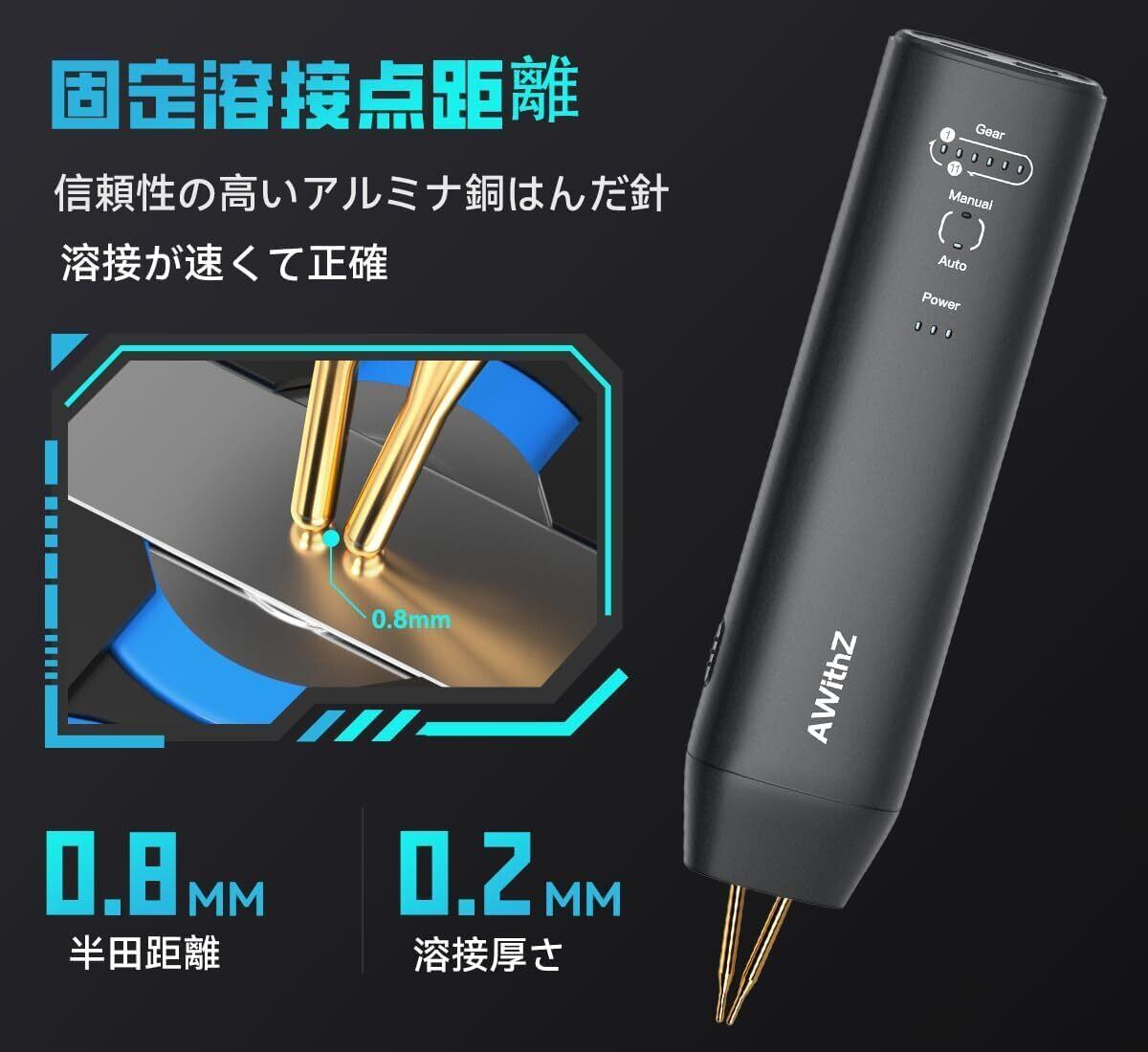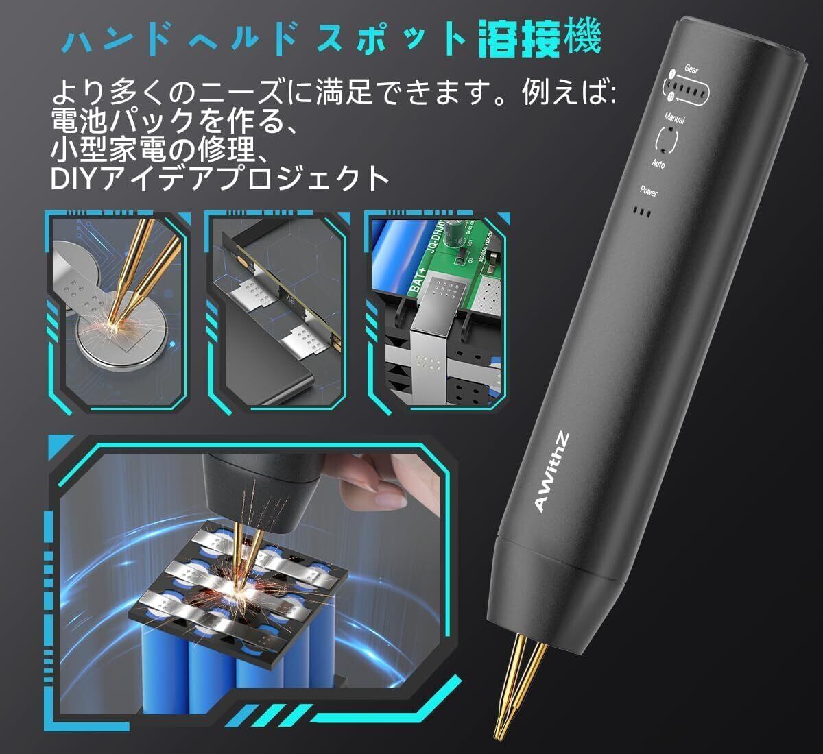 AWithZ H1 -- 小型ハンドヘルドバッテリースポット溶接機。小型バッテリーパックの作成、18650 端子の並列接続、ボタン電池などの小型部品の溶接に適しています。 はんだごてのようにバッテリー全体を加熱することなく、部品へのダメージを少なくしてコネクタをバッテリーに接着できます。