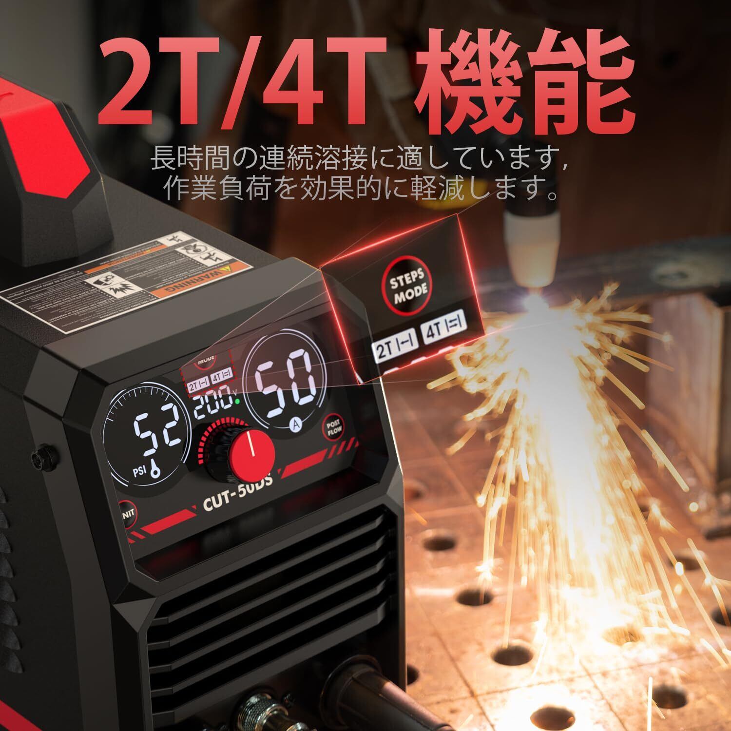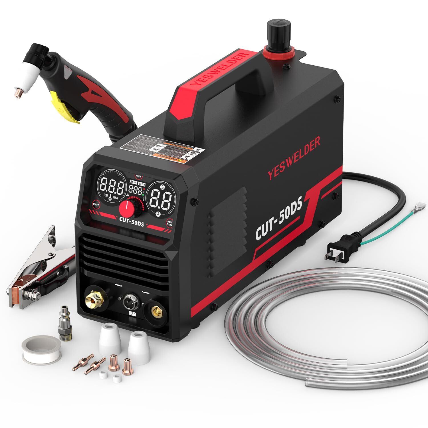 【人気商品】YESWELDER 50Amp プラズマカッター HF、大型LEDデジタルディスプレイ、最大カット厚16mm、クリーンカット5mm、100/200V プラズマ切断機 2T/4T IGBT、PT31 簡単取り付けオイル/ウォーターセパレーター