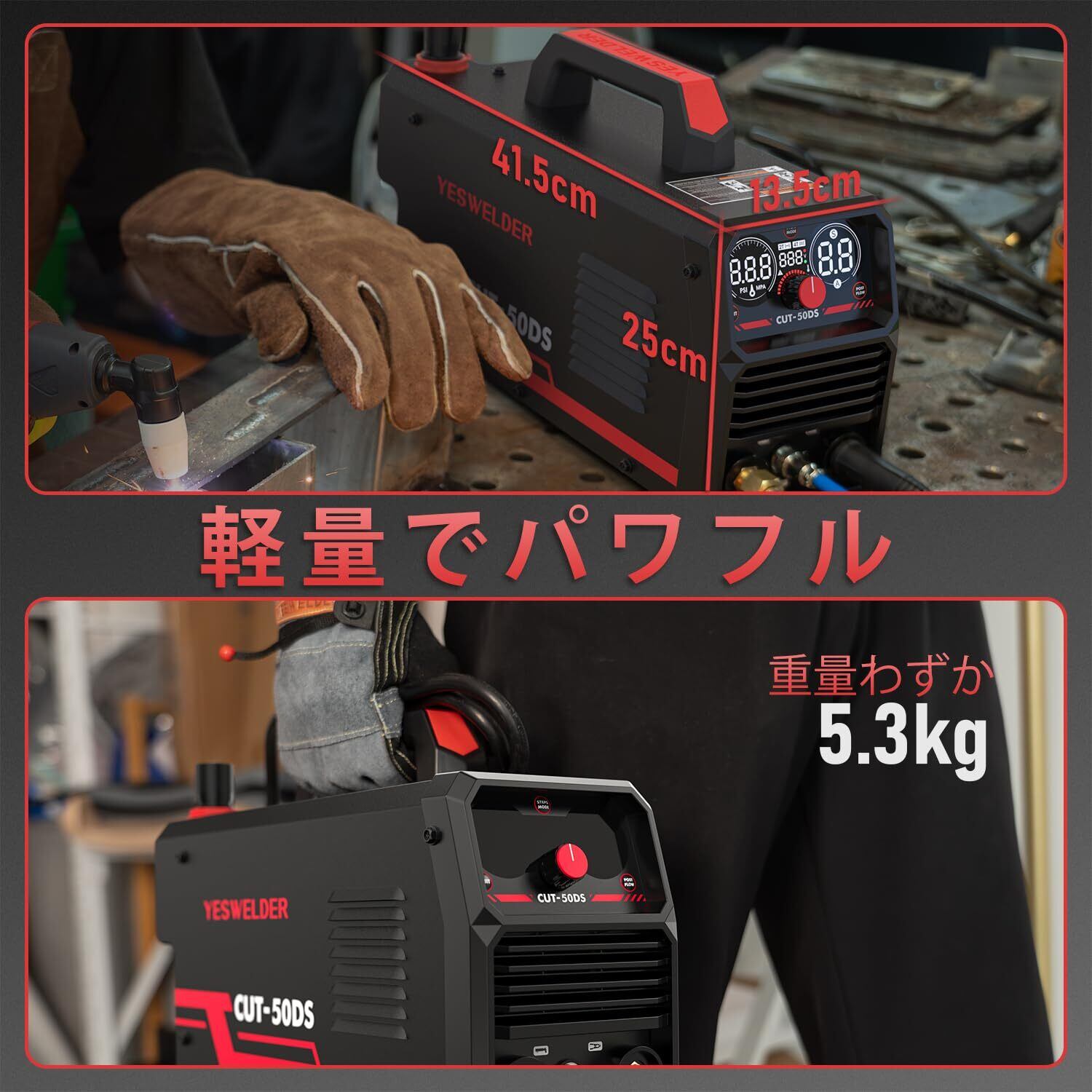 YESWELDER 50Amp プラズマカッター HF、大型LEDデジタルディスプレイ、最大カット厚16mm、クリーンカット5mm、100/200V プラズマ切断機 2T/4T IGBT、PT31 簡単取り付けオイル/ウォーターセパレーター